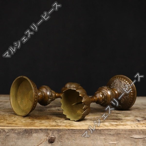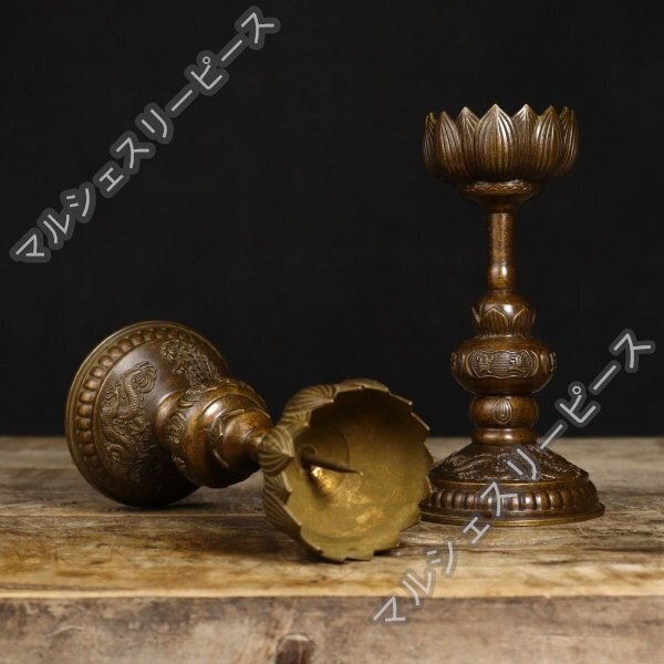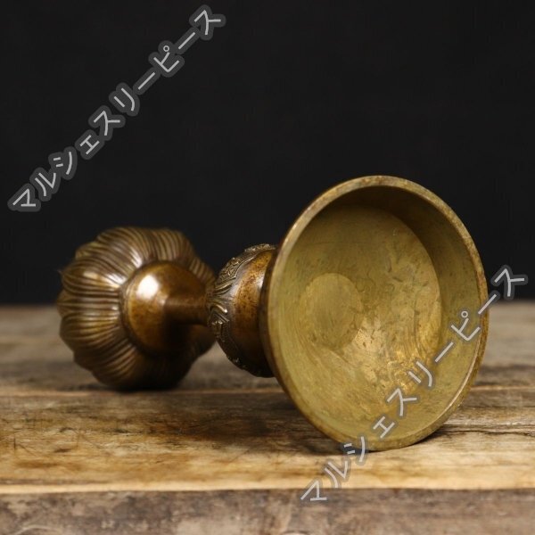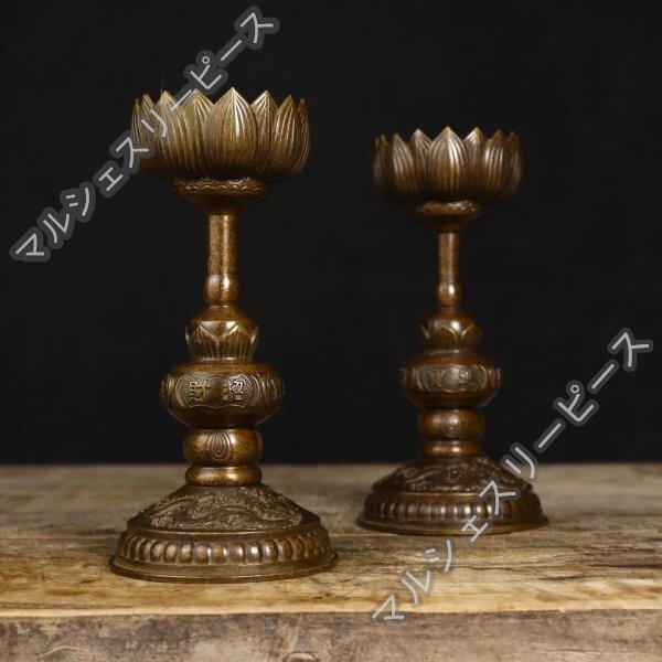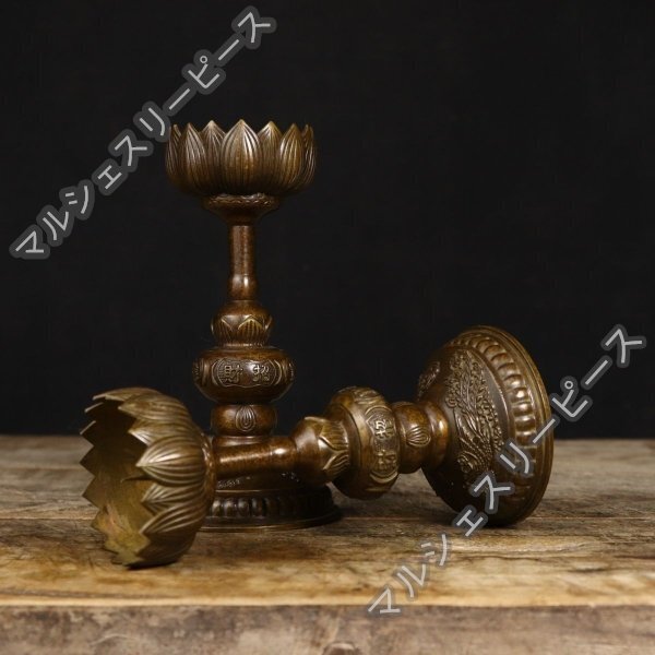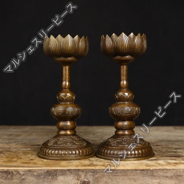 真鍮 黄銅 純銅蓮華台 一対 燭台 蝋燭台 ペアー  黄銅   観賞 置物 鑑賞 美術品 収蔵