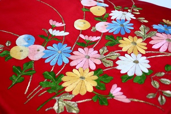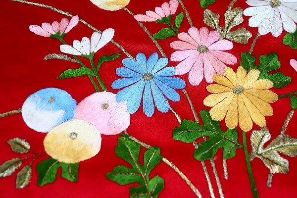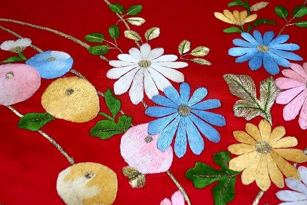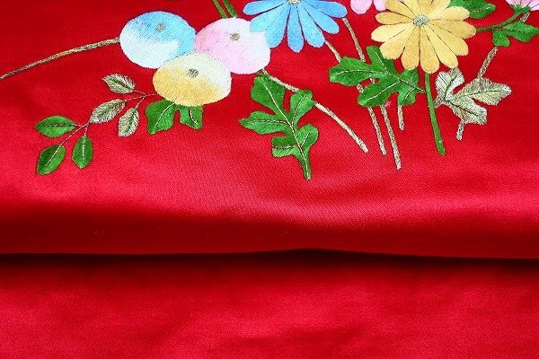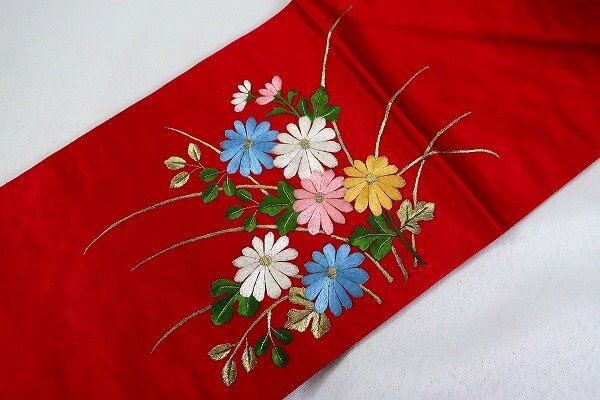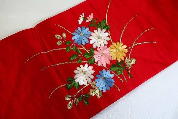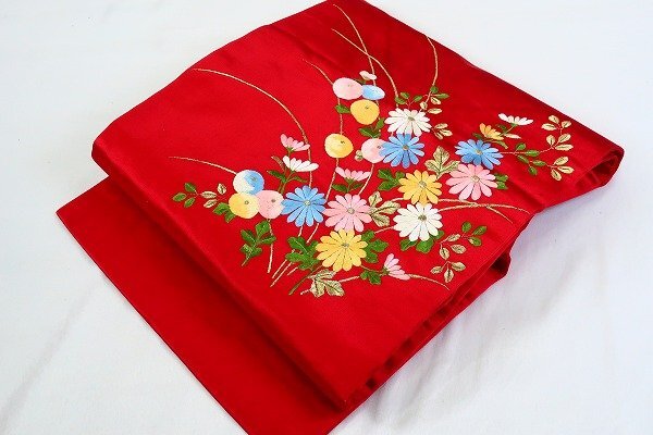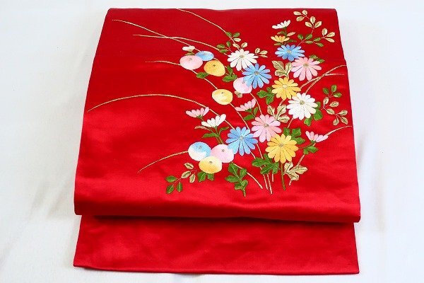 【着物フィ】未使用品 アンティーク 名古屋帯 蘇州刺繍 赤 長さ3m58cm 中国刺繍 大正ロマン レトロ お洒落 仕立て上がり 17549 |