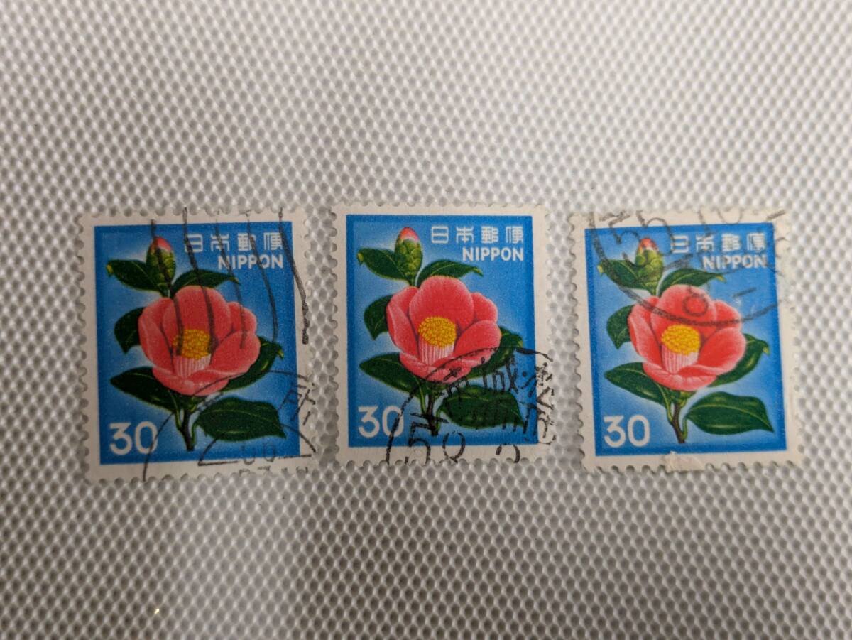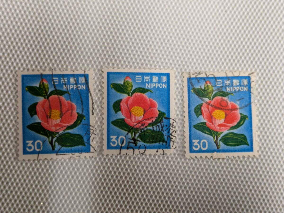 普通切手 1966-1989 新動植物国宝図案切手 Ⅴ.1980年シリーズ (封書60円時期) ツバキ 30円切手 単片 使用済 3枚
