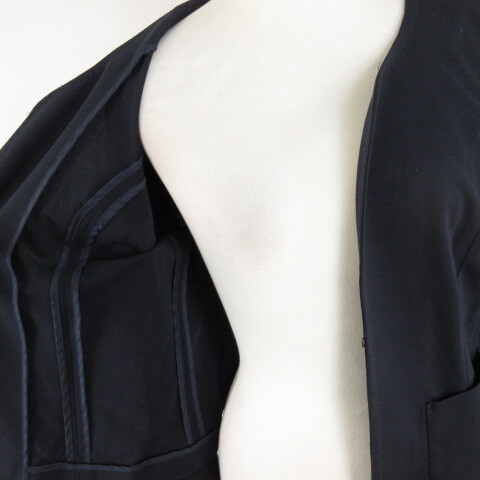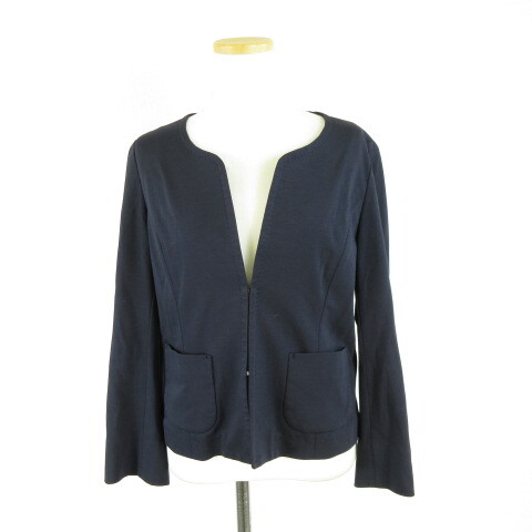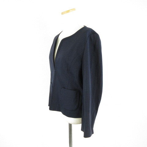 イネド INED ノーカラージャケット 長袖 ストレッチ 紺 11 *A854 レディース