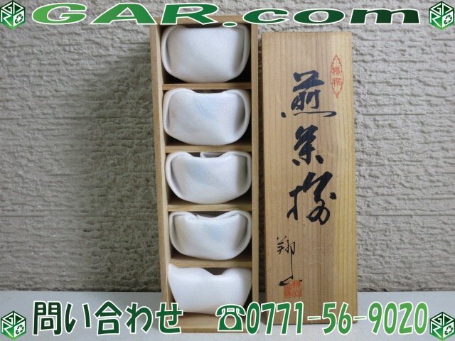 MQ42 特選 陶彩 煎茶揃/煎茶揃い ちぎり絵 湯呑/湯飲み 翔山作 5客セット 共箱