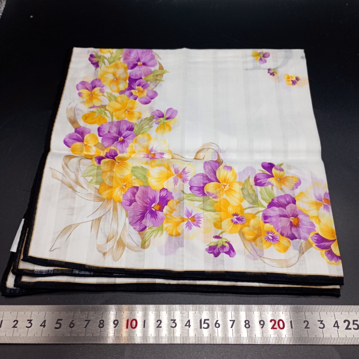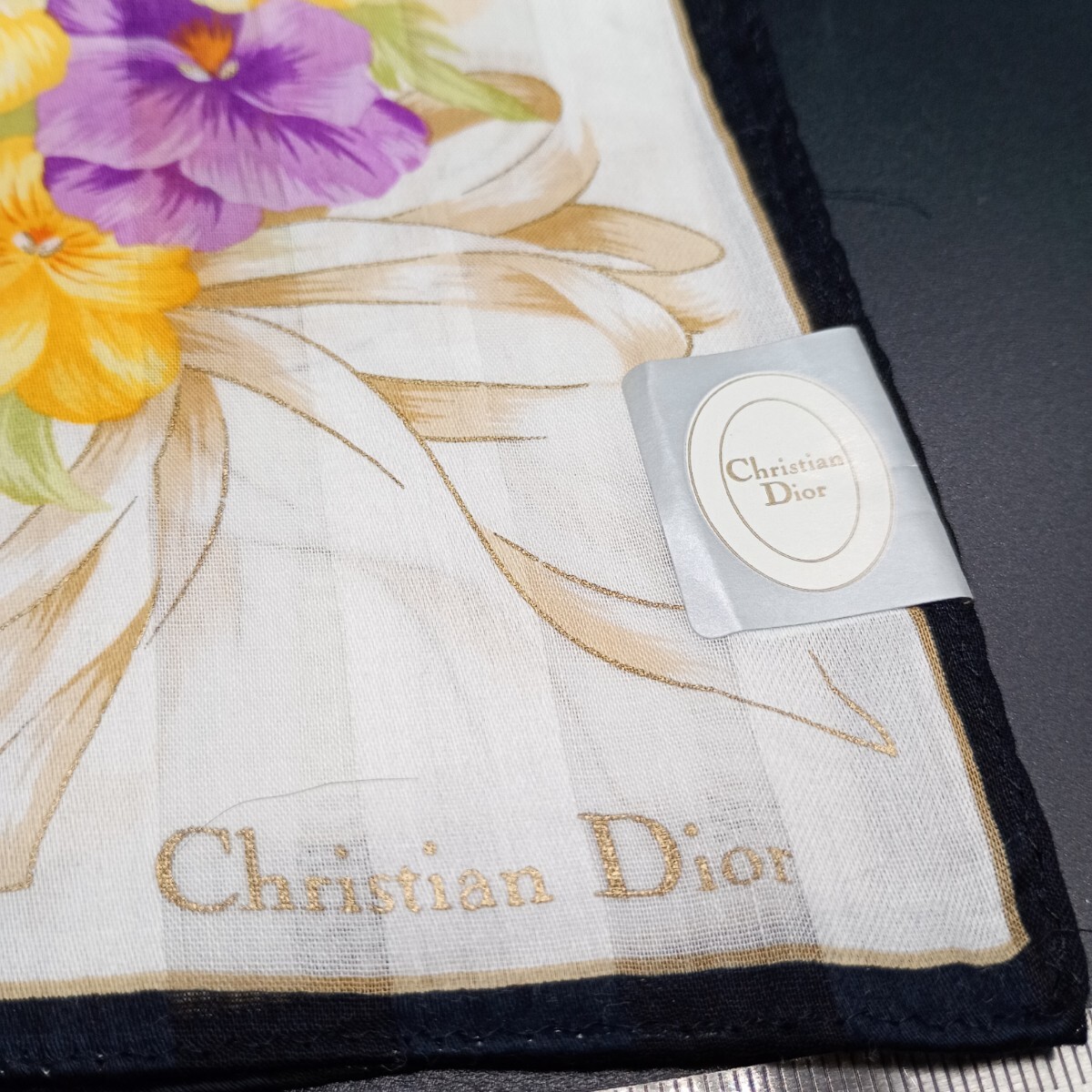 Christian Dior クリスチャンディオール ハンカチ 花柄 パンジー ビオラ ふちブラック  no.3003