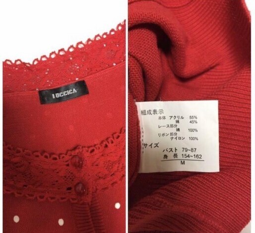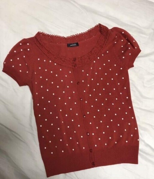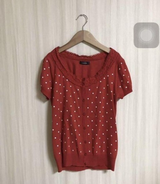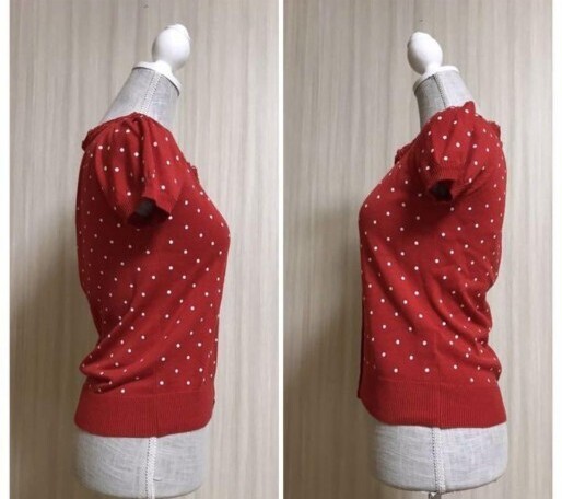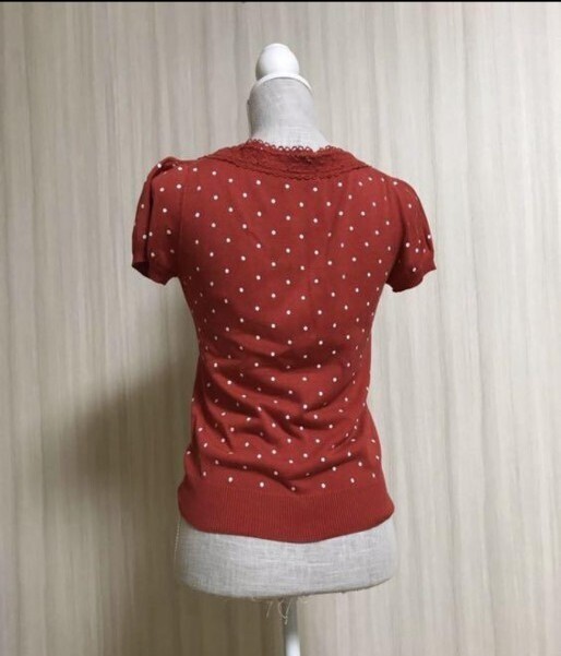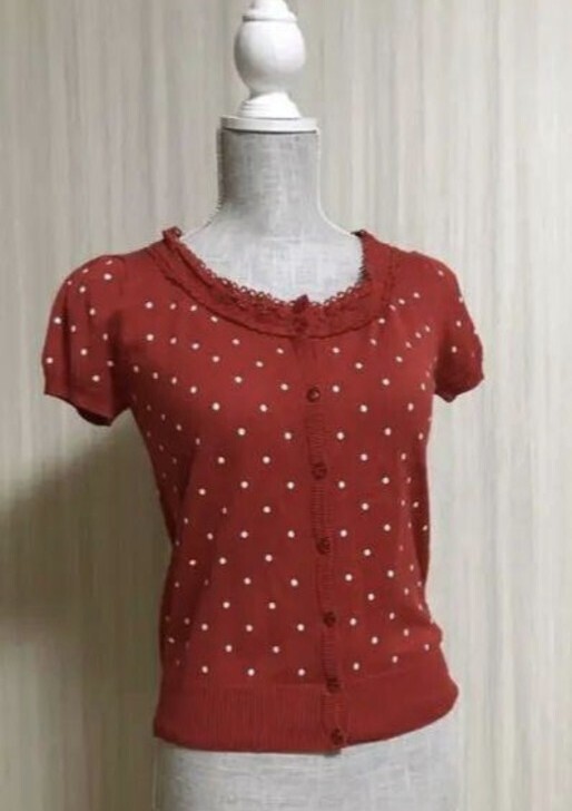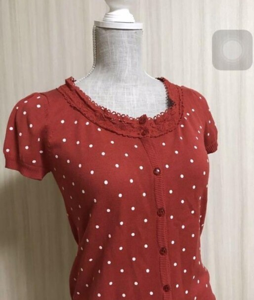 ●説明:鮮やかな赤に白いドット柄が可愛い半袖ニット、カーディガンです。
