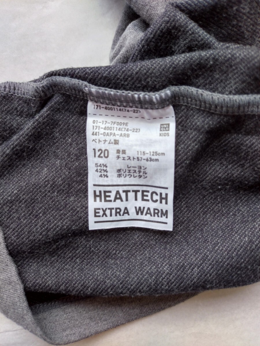 美品 UNIQLO ユニクロ ヒートテック コットン クルーネック 長袖 インナー グレー 120 HEATTECH EXTRA WARMです。
