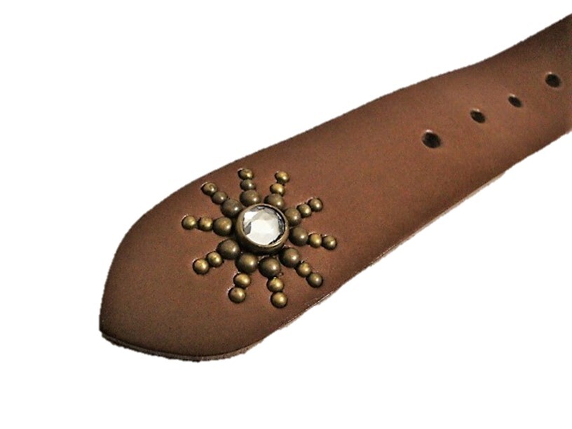 栃木レザー エンドオンリースタッズベルト チョコ(クリスタルスポッツ)一枚革 ヴィンテージタイプ
