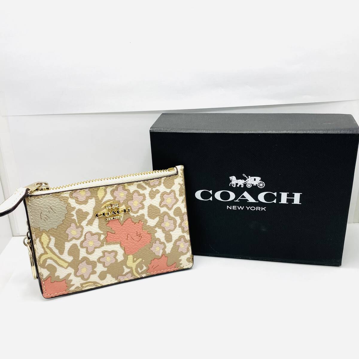 COACH コーチ フローラルプリント コインケース パスケース 小銭入れ 57870 花柄 箱付き PVCレザー