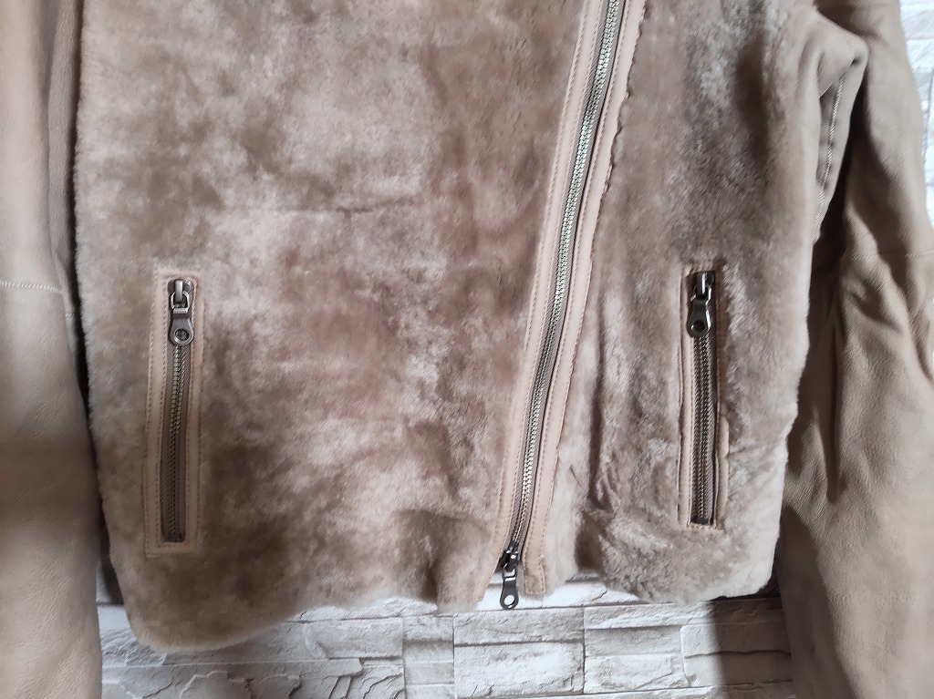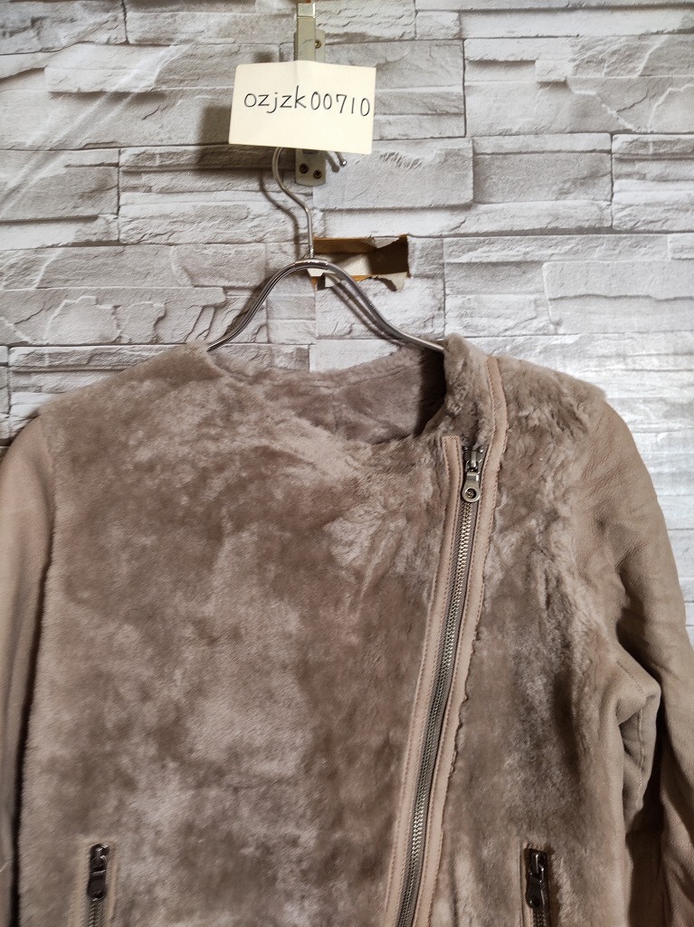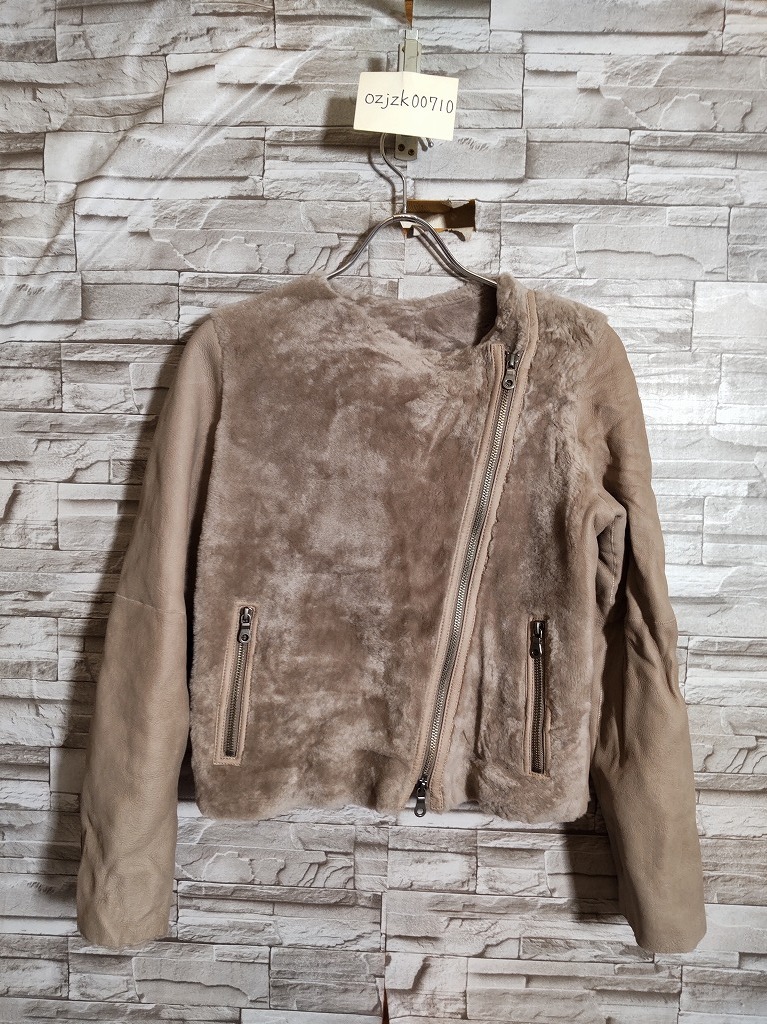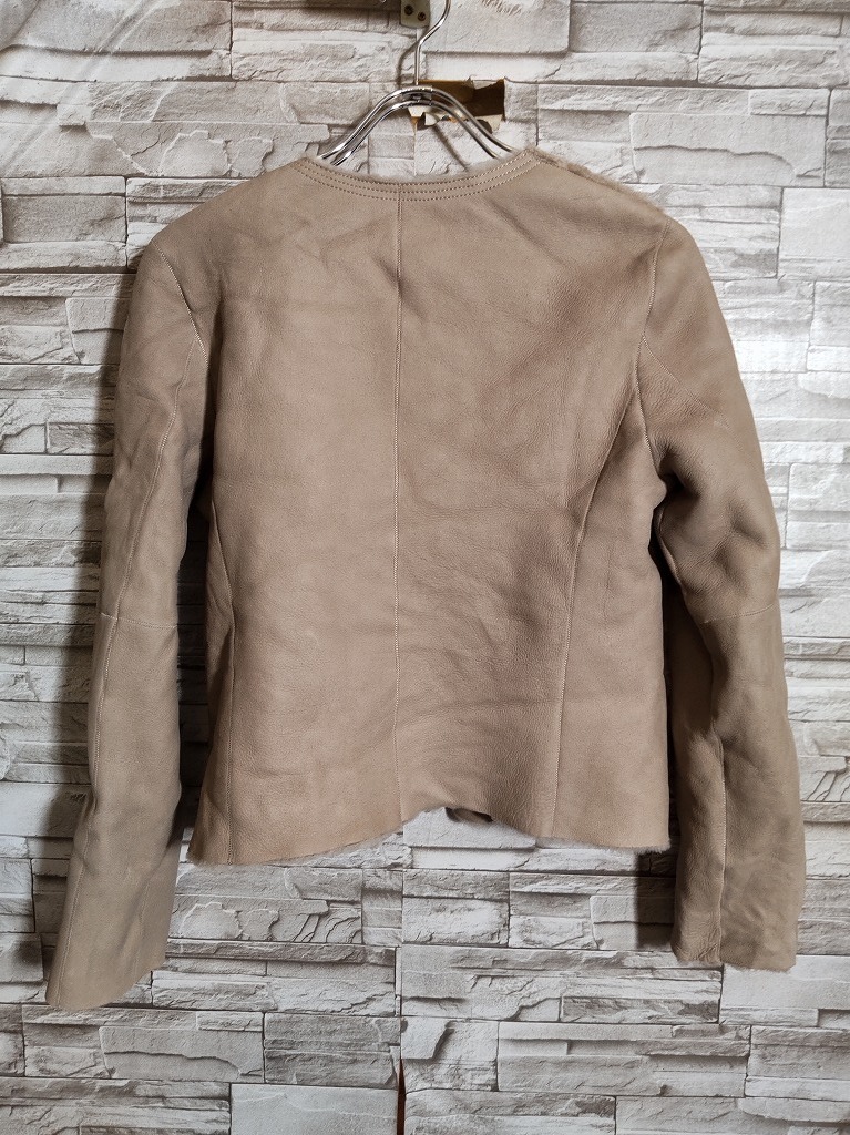women's H912 Pinky&Dianne ピンキー&ダイアン リアルムートン 本革 ノーカラー ライダースジャケット 38 ベージュ系 羊革