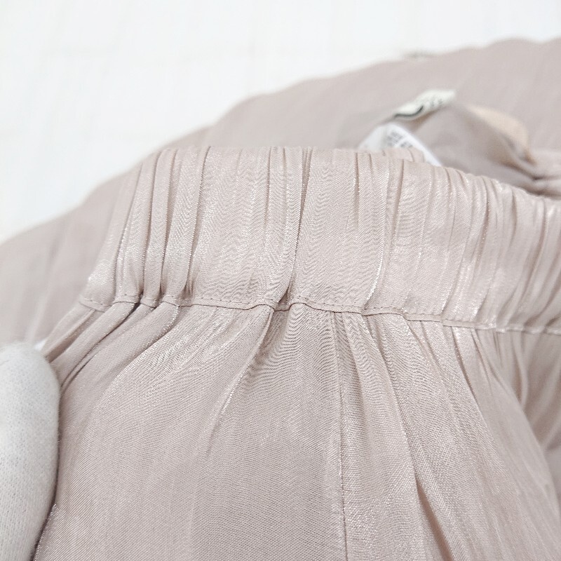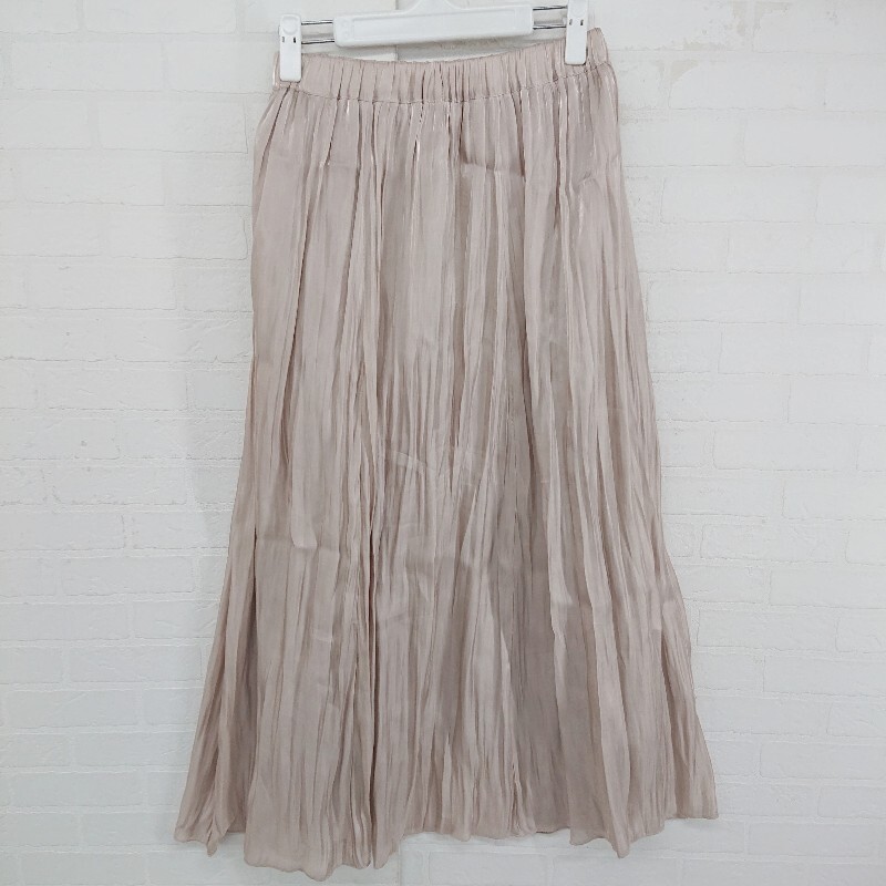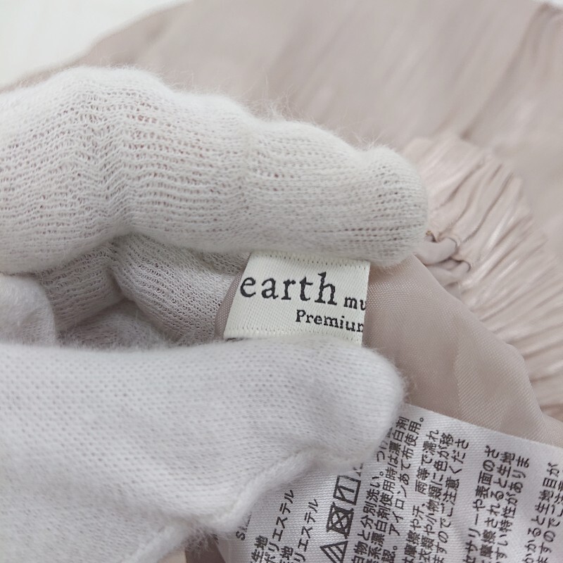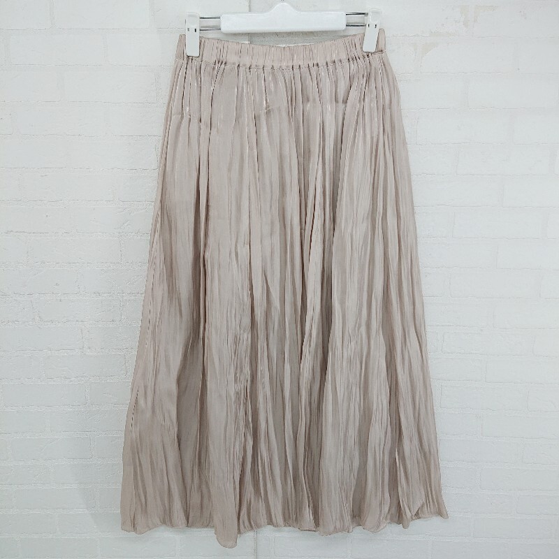 ◇ earth music&ecology 光沢 サテン風 キレイめ マキシ ギャザー スカート サイズF ライトベージュ系 レディース E