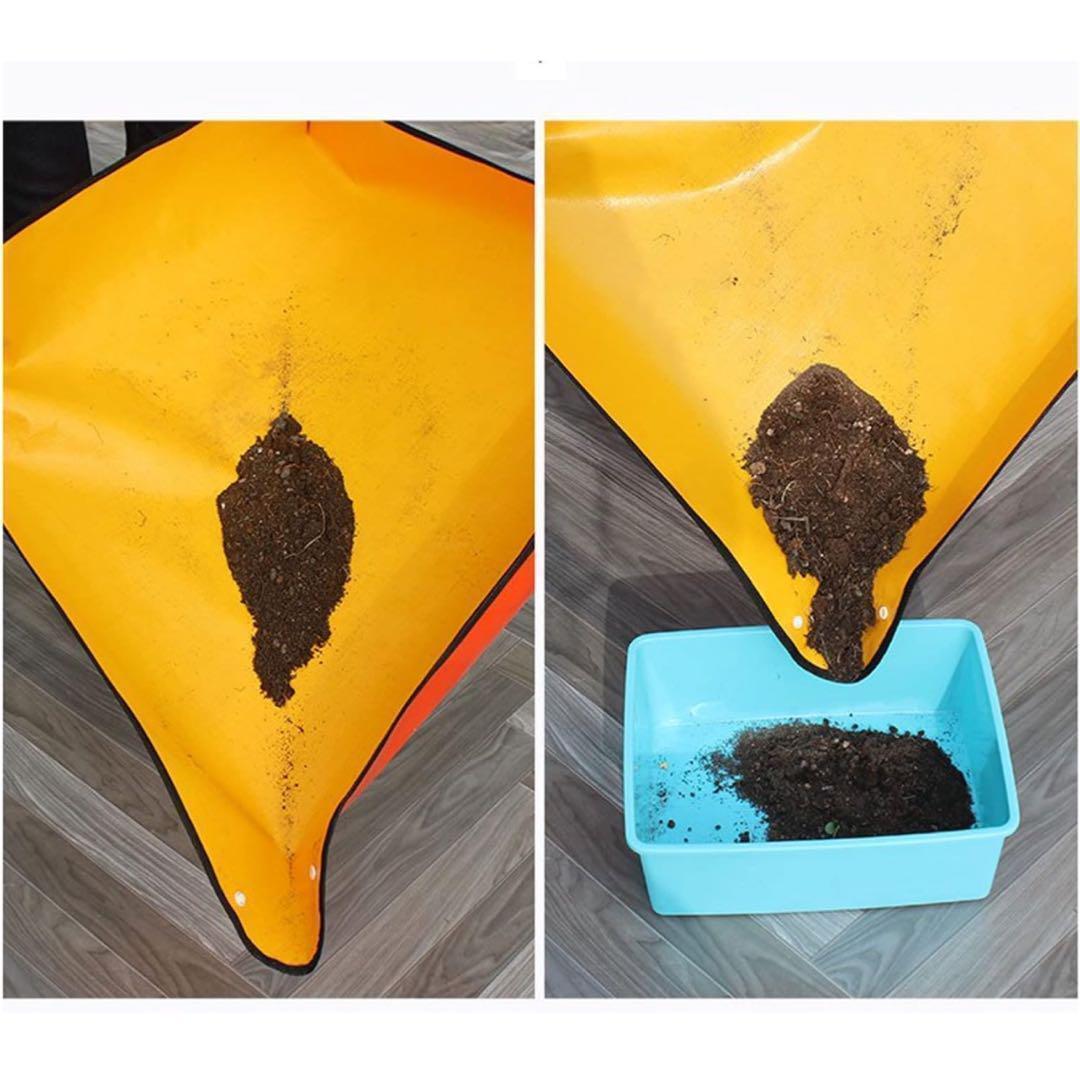 【使うシチュエーション】 お庭やベランダでの植物の栽培、土作り、生け花、エアープランツ、植え替えなどの作業で、どうしてもこぼしてしまう土類をしっかりと受け止めるトレー型のシートです。四隅のスナップボタンを留めることでトレイ状になり、用土のこぼれ落ちや、飛び散りを防止。