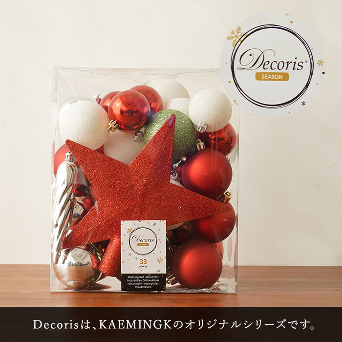 クリスマスツリー 飾り付け オーナメント ボールセット KAEMINGK レトロ トップスター付き MIX クリスマスカラー 33個入[130097]