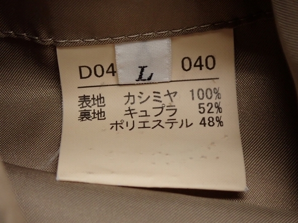 | 色 茶 素材 表地 カシミヤ100% 裏地 キュプラ52% ポリエステル48% | |