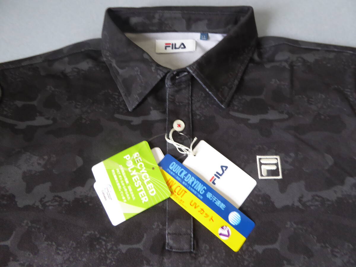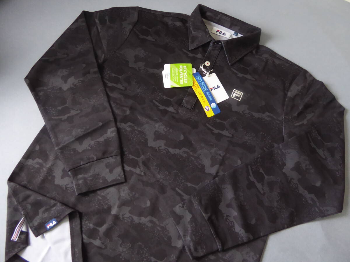 FILA GOLF フィラ ゴルフ 吸汗速乾 UVカット ストレッチ 迷彩柄 長袖ポロシャツ LL 黒
