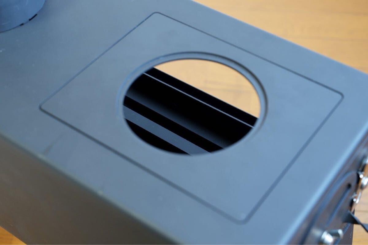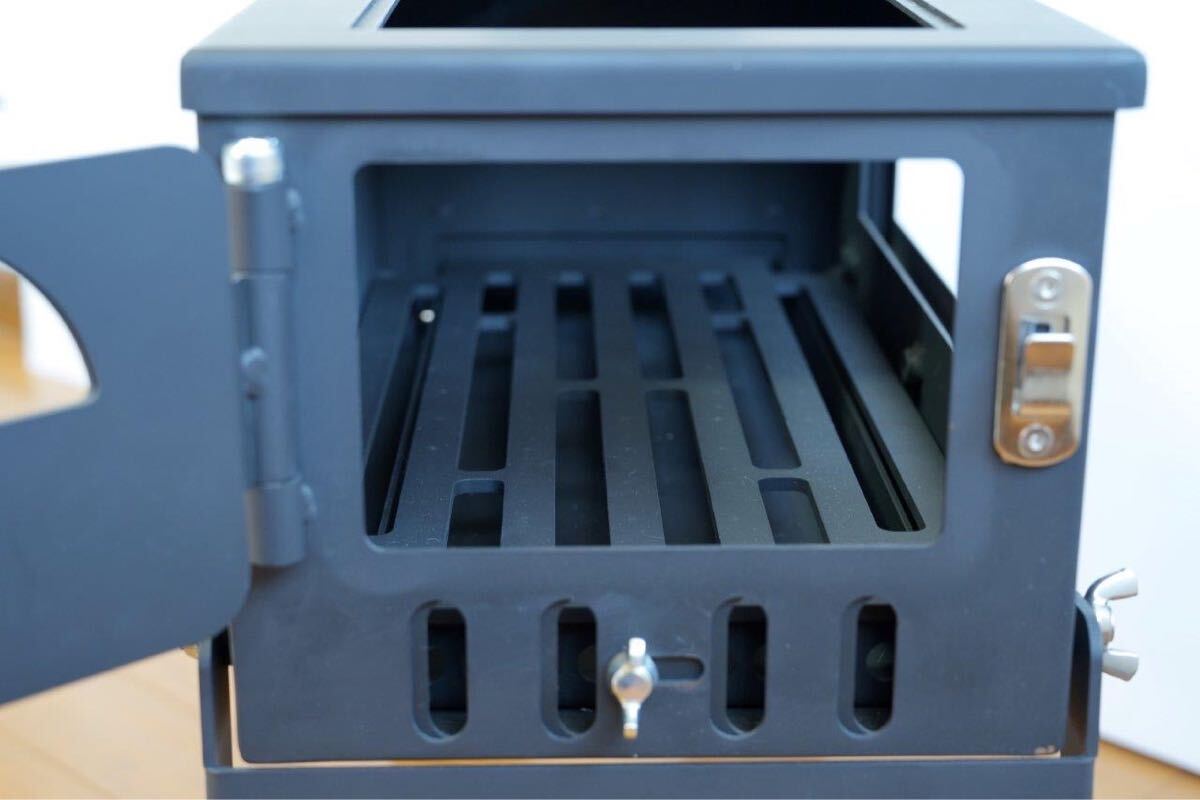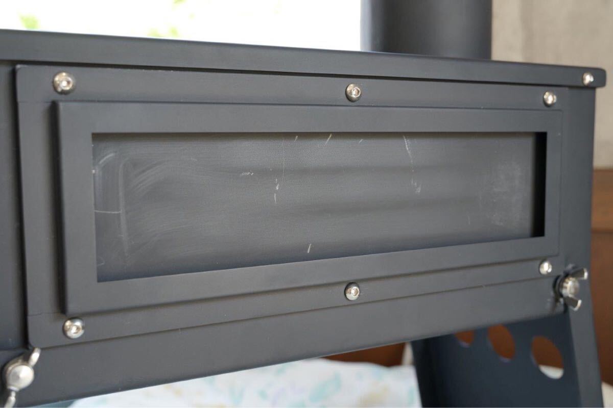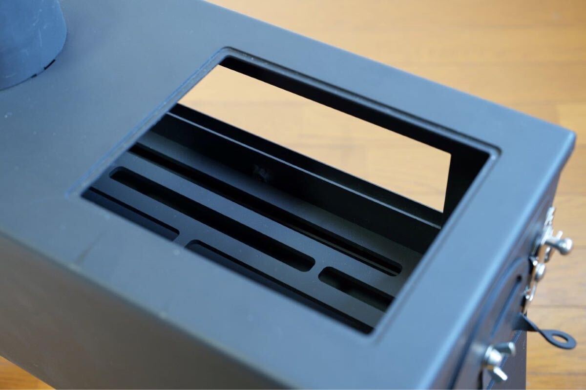 横窓は当初耐熱ガラスを入れる予定でしたが、金額が折り合わなかったのとすぐに黒くなってしまうことからデザインだけ残し蓋にしましたので外すなりガラス入れるなりはご購入さん様でカスタムしてください。