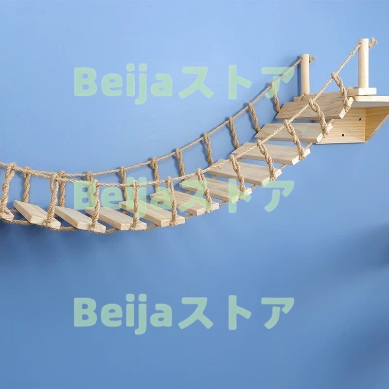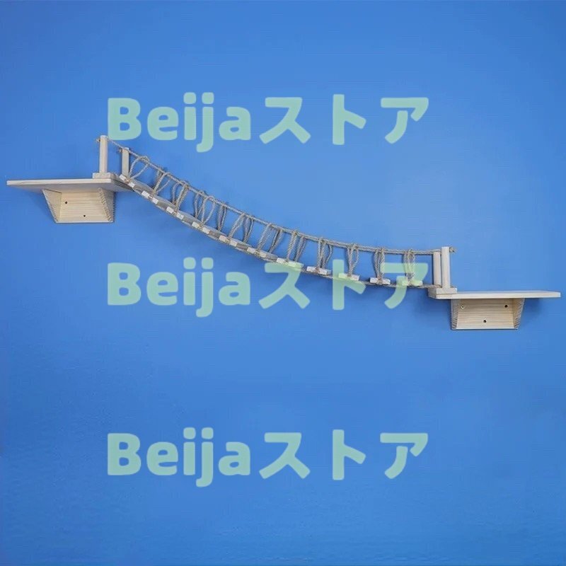 ■高品質木製、ペンキ塗ることなくて、安全無毒。ナチュラルな風合い、お部屋のインテリアに合わせやすい。 ネジで壁にしっかりと固定でき、省スペース、超頑丈な構造、猫ちゃんが安全に飛び跳ねることを保障できる。 猫ちゃんが楽しく遊びながらストレスと運動不足が解消できる。遊びだけでなく、快適に寝たり、ゆっくりくつろぐこともできる。 猫飼いの友人にのプレゼントとして最適。パッケージ:橋*1+固定■マウント*2+取り付け部品