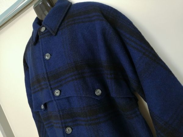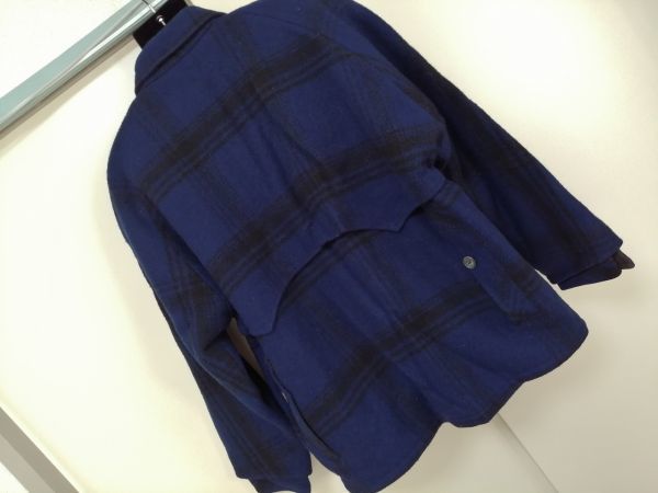 kkyj3024 ■ Outdoor Life by Edwin co.,ltd. ■ エドウィン コート ショート丈 ジャケット チェック ウール混 青 ブルー L