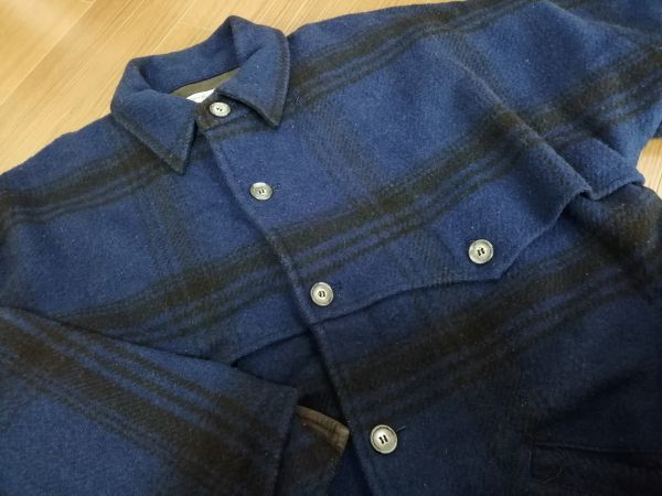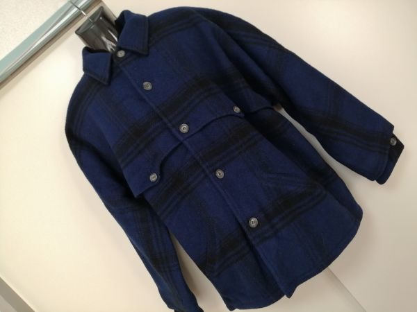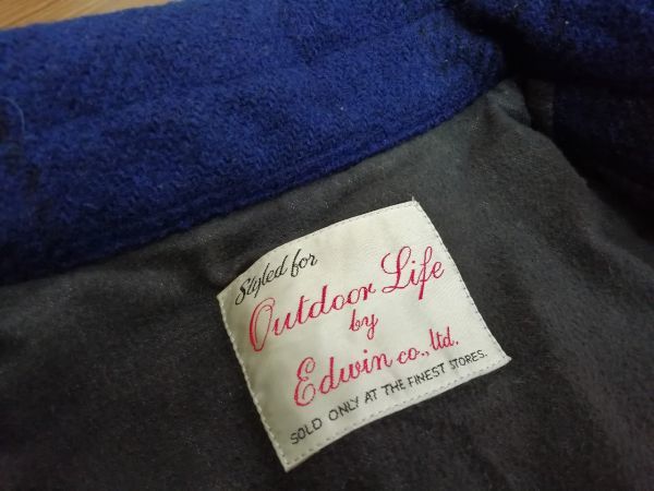 ■ Outdoor Life by Edwin co.,ltd. ■ エドウィン コート ショート丈 ジャケット チェック ウール混 青 ブルー