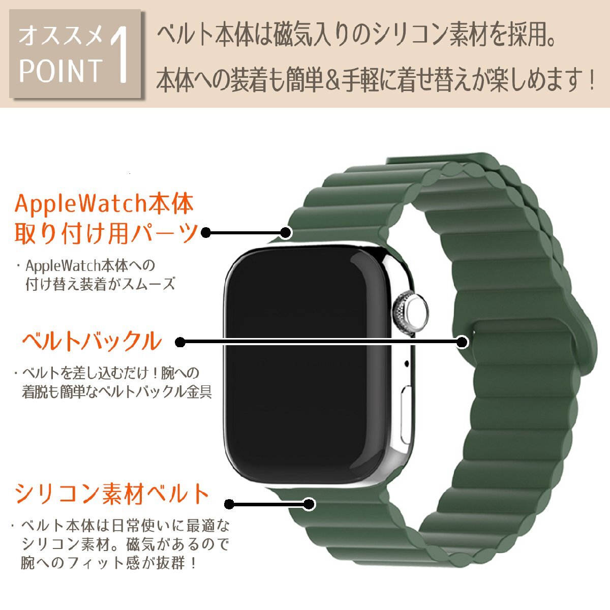AppleWatch アップルウォッチ 時計 バンド ベルト シリコン マグネット 交換ベルト 男女兼用 42mm アーミーグリーン watchband-9ag42