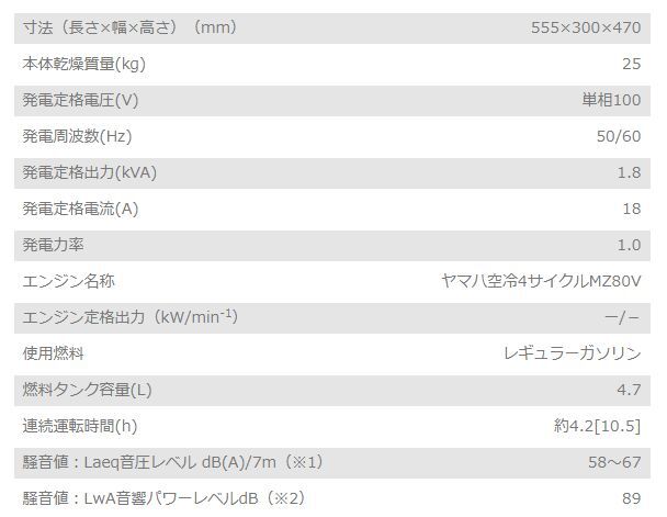 ・1.8kVA防音型で持運びラクラク 軽量25kg。