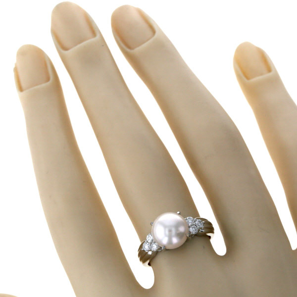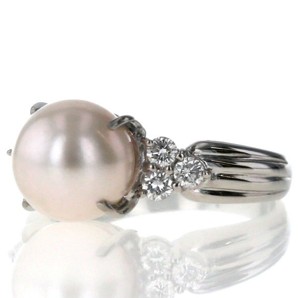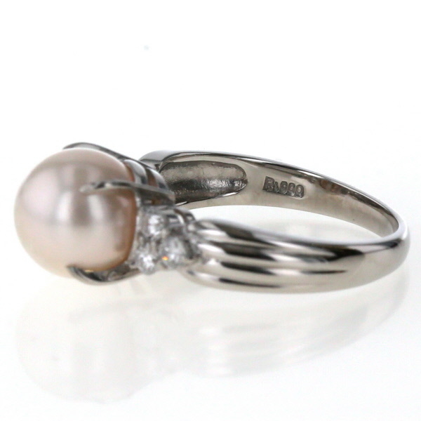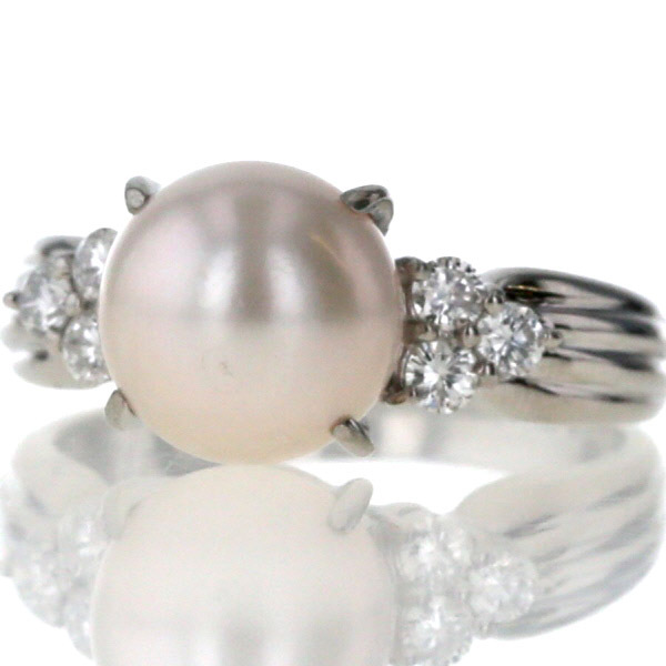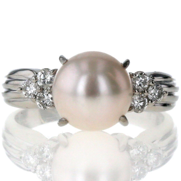 | 商品紹介 | 美しいテリの真珠に両サイドにダイヤモンドがあしらわれた上品なプラチナリングです。 |