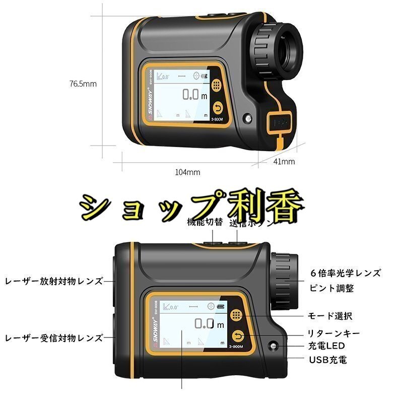 レーザー距離計 ゴルフ距離計 距離計測 6倍率光学レンズ LCDタッチスクリーン 測定距離3~1000m IP54防塵防水 充電式 軽量 モード簡単切替