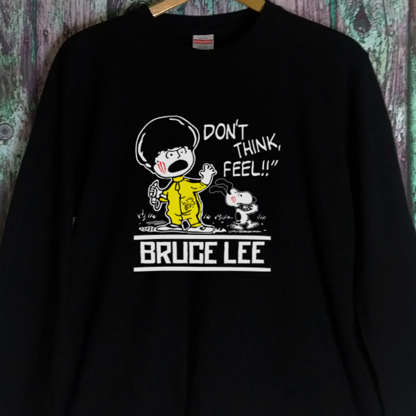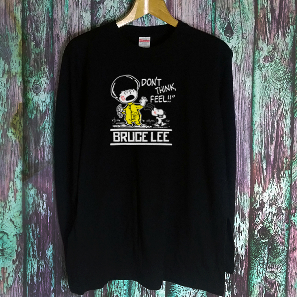 送込 長袖/ロンT 【Snoopy×Bruce Lee】ブルースリー★DON’T THINK. FEEL★ブラック★M~XLサイズ
