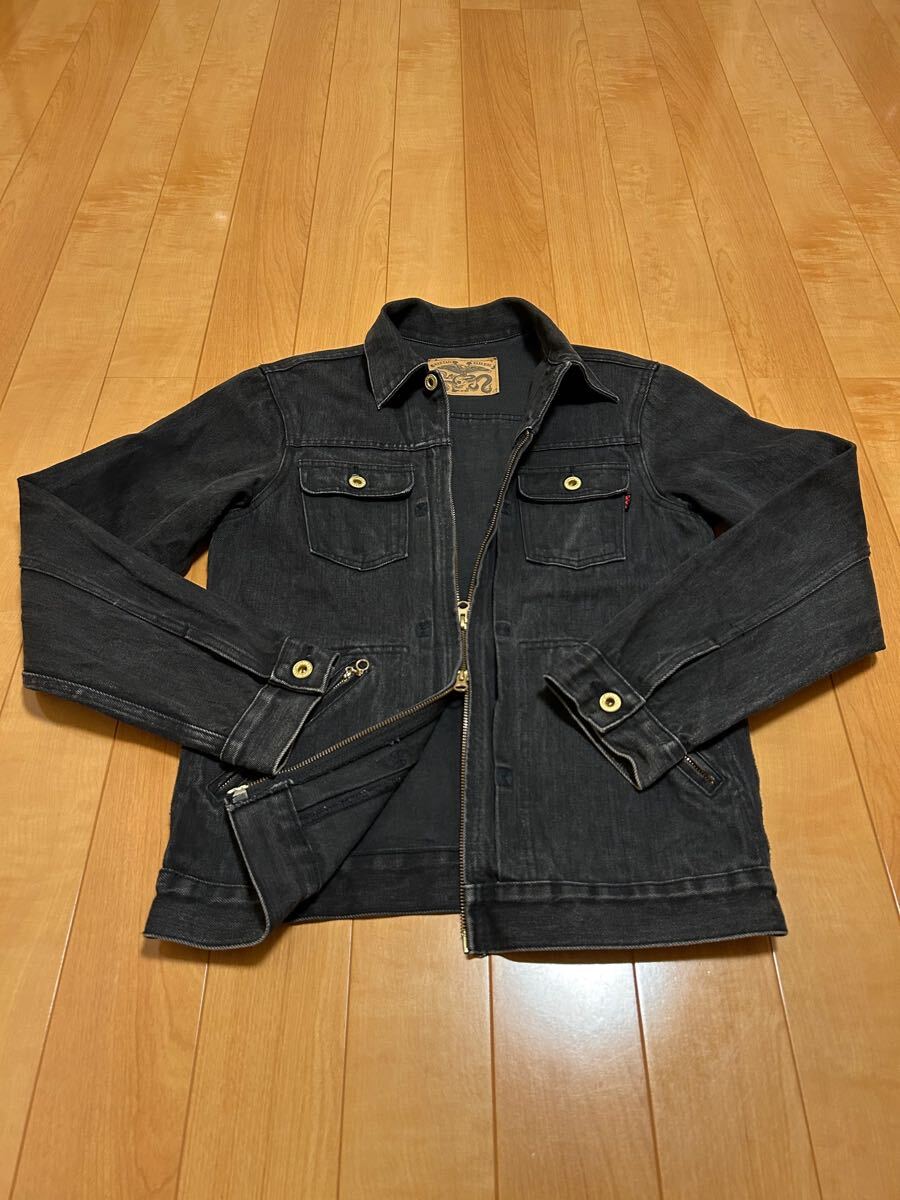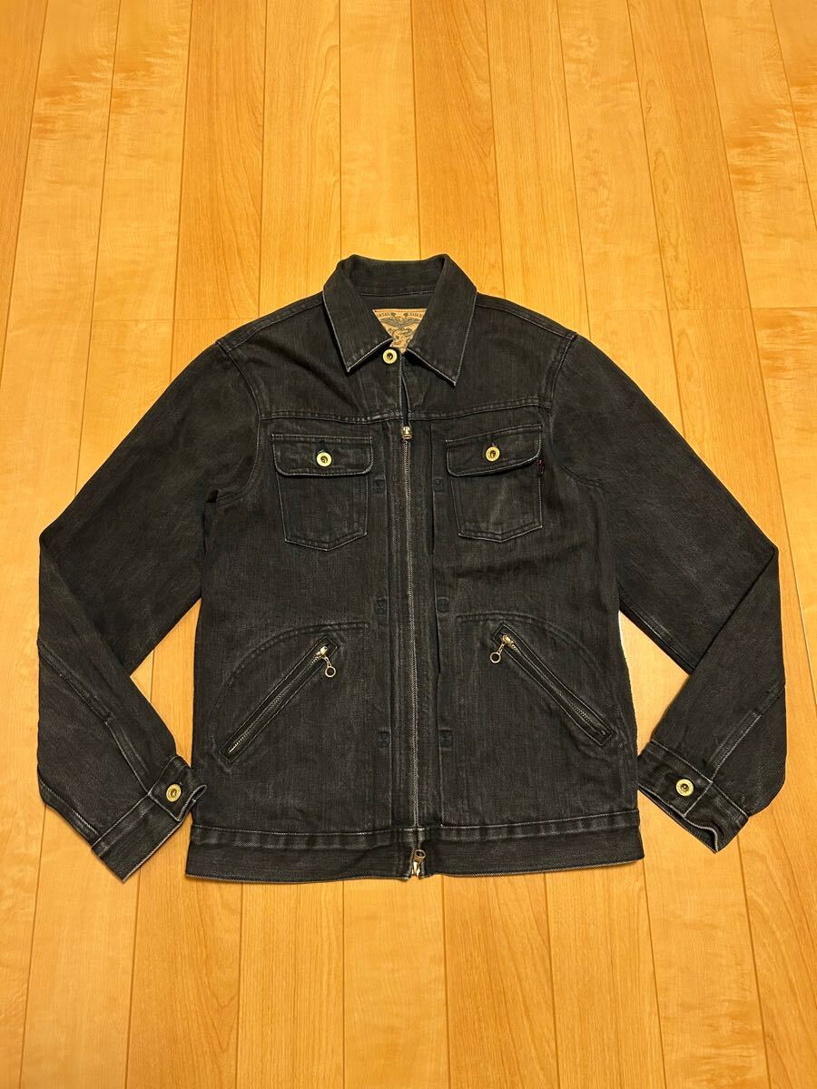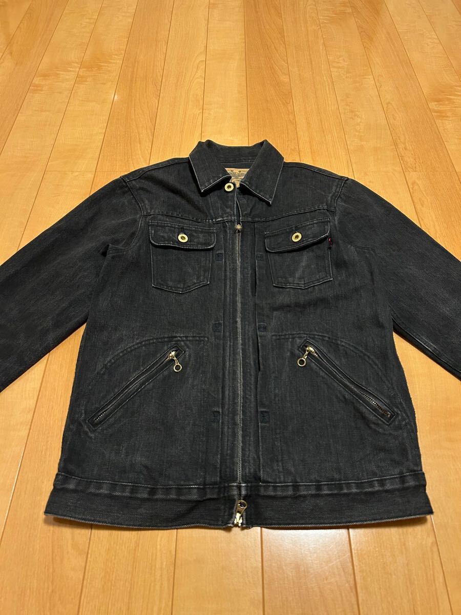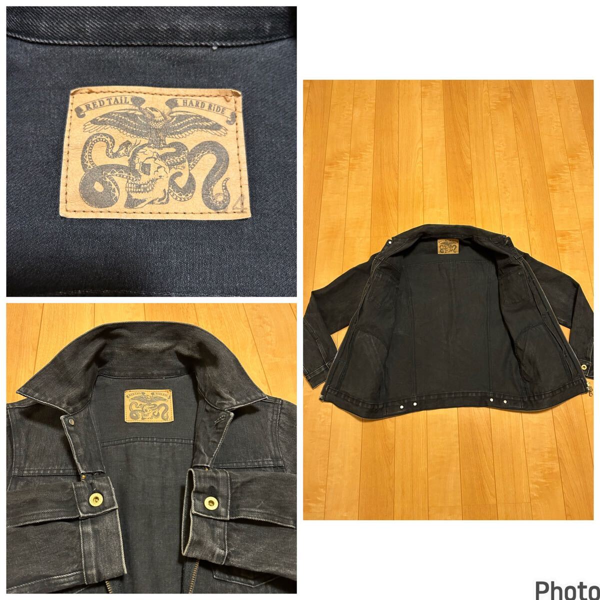 良品★RED TAIL/レッドテイル・HARD RIDE メンズサイズ34?大き目 ブラックデニム.Wフルジップ4Pジャケット ドーナツボタン&チェーンZIP