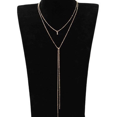 チョーカー 首輪 韓国 ゴールド ネックレス シンプル チェーン ロング ビーズ タッセル レディース 襟 コリア 色 金 Gold 長さ #C174-22