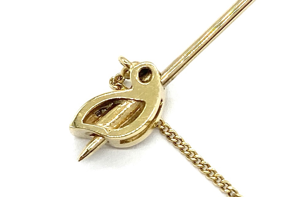 | 解説 | 華麗な姿に、輝きのコントラストがくっきり。ピンの先にもデザインが施された、凝った設えに溜息…。ラペルはもちろん、スカーフ留めや帽子のワンポイントにも。※4枚の羽は僅かに可能します。 |