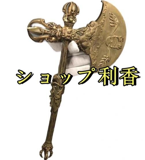 密教法具★ 極上品 鉞斧 寺院仏具 銅製 磨き仕上げ 長さ33cm