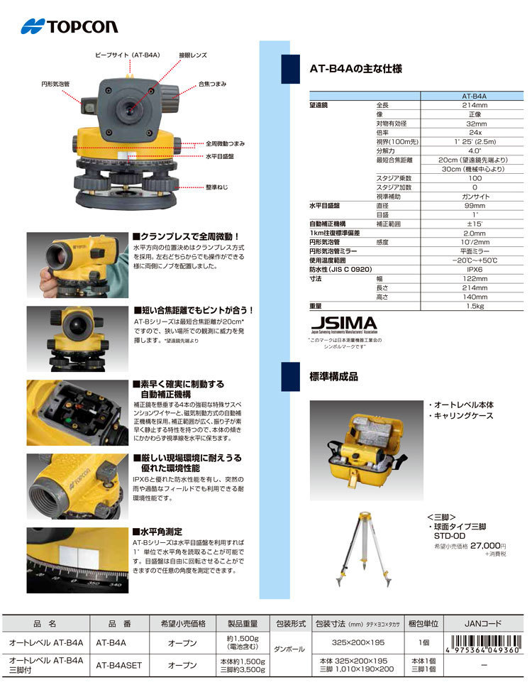 【新型/校正品】トプコン/オートレベル/AT-B4A/24倍/校正書/送込/