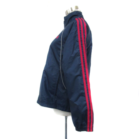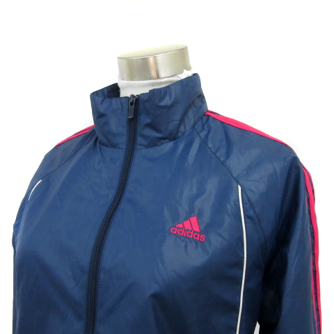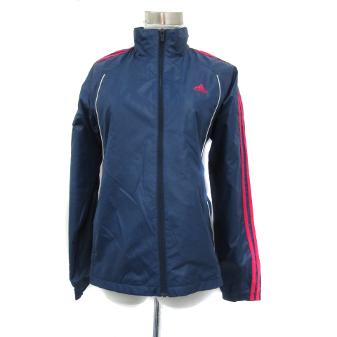 アディダス スポーツウェア ウィンドブレーカー ブルゾンジャケット ジップアップ ロゴ刺? 裏起毛 ナイロン M 紺 ピンク レディース