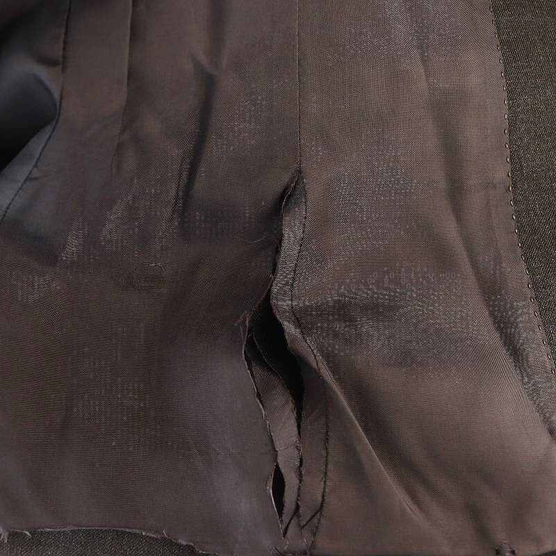 【状態】この商品には下記のようなダメージがあります。 ・首周りと両袖口周り裏側、右目裾裏地の茶色の薄汚れやスレ ・左サイド裏地に14cm長の破れ ・右サイド裏地の縫い目のホツレ ・品質タグに茶色のスレた汚れ ※あくまでも中古品ですので掲載写真や記載内容をご確認いただき、ご理解の上ご購入ください。