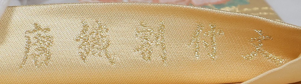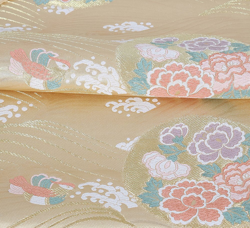 | 色・柄 | 岡文織物謹製 西陣織袋帯 唐織割付文 金箔地 唐織・花丸文 牡丹・紅葉・菊・南天・オシドリ・荒波 (写真では上手く色が出ない場合があります。ご了承下さい) ※お使いのディスプレイの種類や設定の差により 実物の色と画像の色が少々異なることもございます。 |