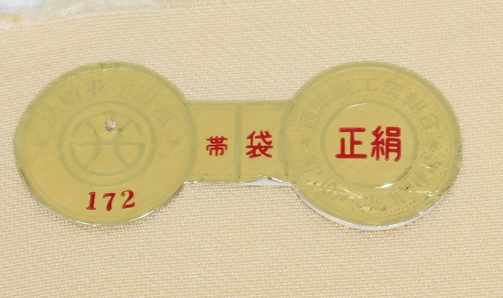 | コメント | 西陣認証ついています。 たれの中に唐織付文入り。 留袖・付下げ・訪問着・フォーマル用にいかがですか。 未使用品。六通。 芯入り仕立て上がり品。 すっきりとした配色で現代の空間に映えるもの。 日本の古典文様をはじめ、長い歴史で培った高い技術に 今様の美しい意匠が光ります。 とても上品な帯です。 仕立て上がり。 上品な仕上がりになっています。 生地の状態は良いと思います。 目立ったシミ汚れはないと思います。 美品です。 このままお召しください。 |