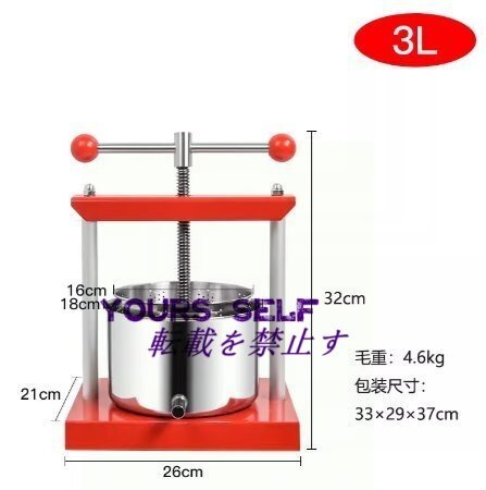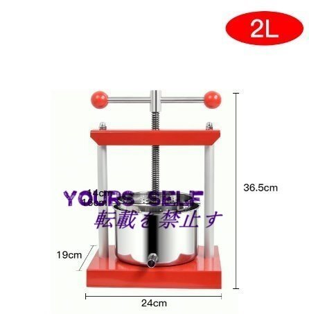 2L果汁しぼり器 蜂蜜絞り器 ハンドプレス器 密閉 取り外し可能 ステンレス鋼 /蜂蜜/野菜/果汁残渣の分離/ワイン造り/薬剤濾過 家庭 業務用