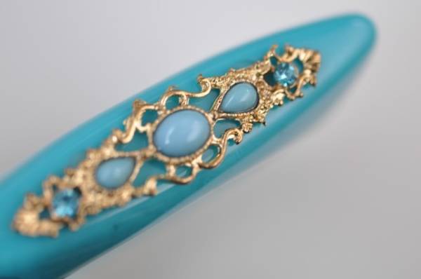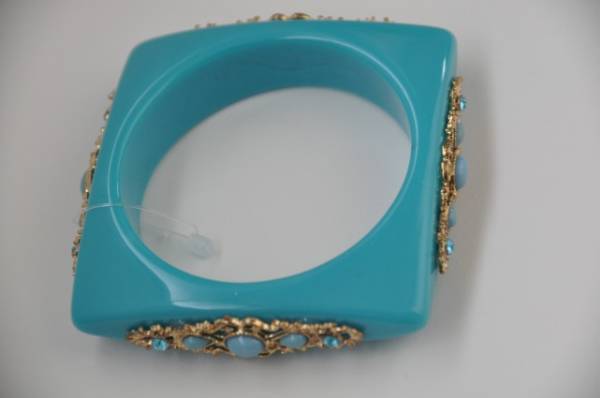 鮮やかなブルグリーン系の四角い形の面白いバングルです