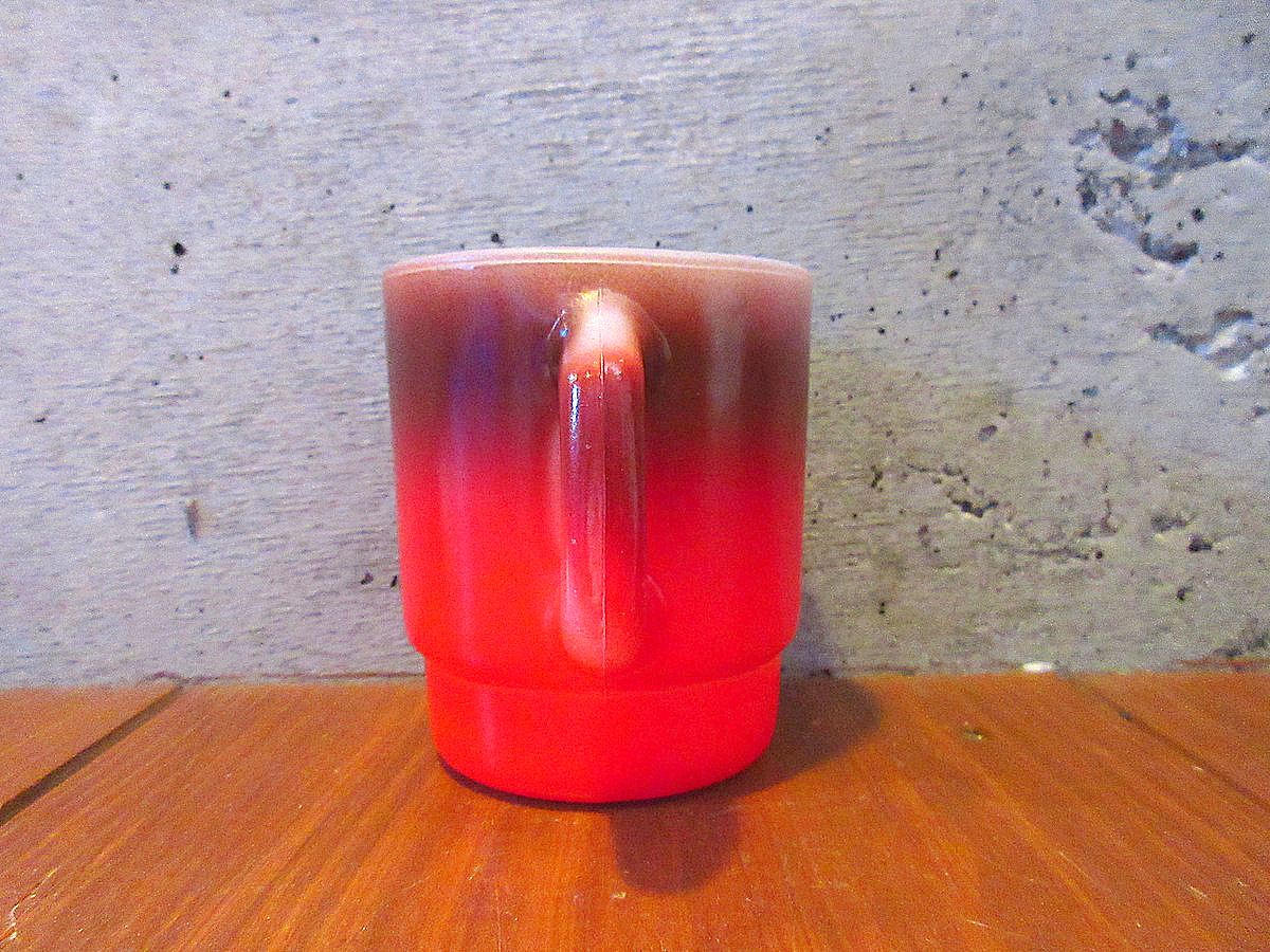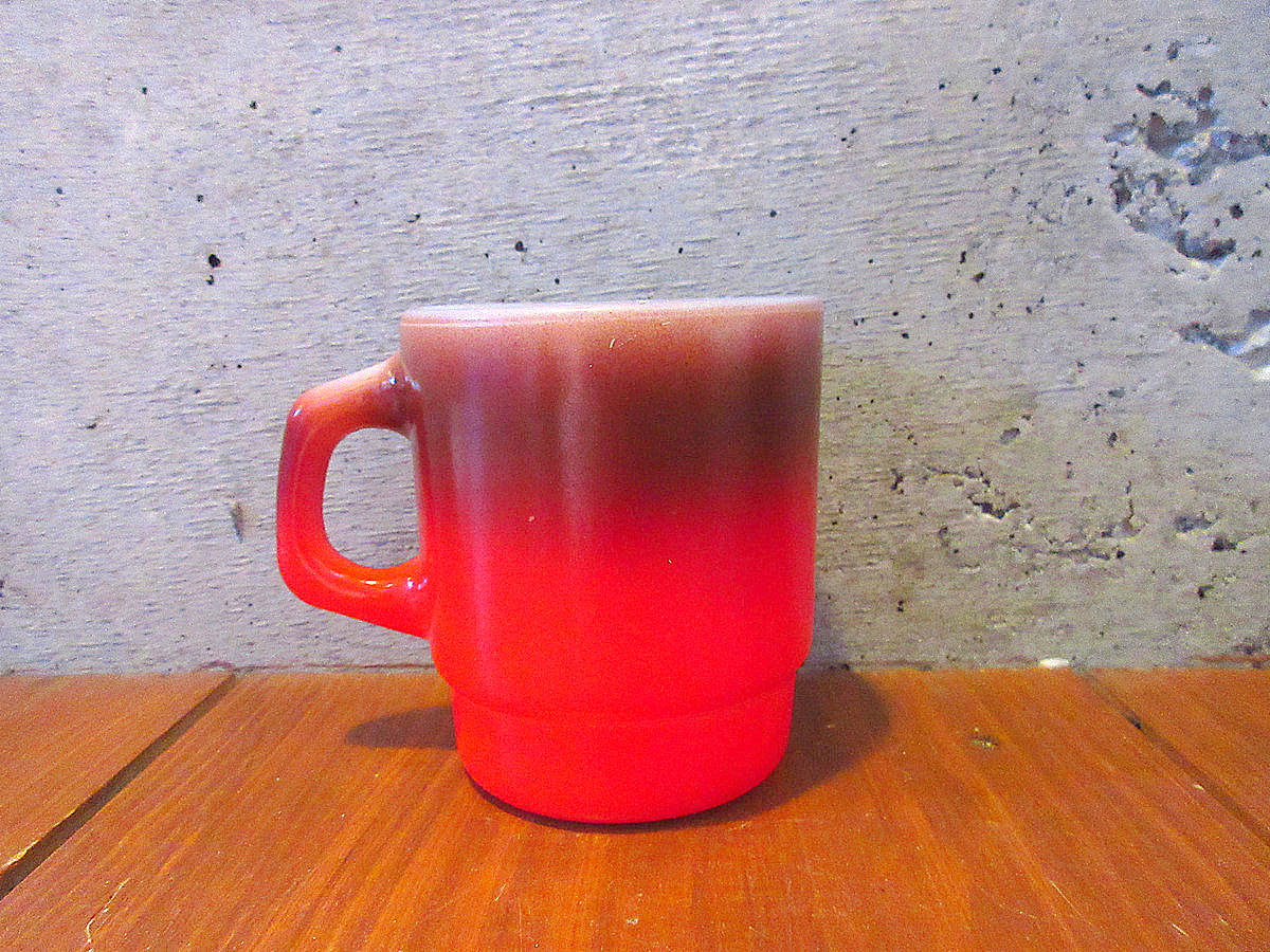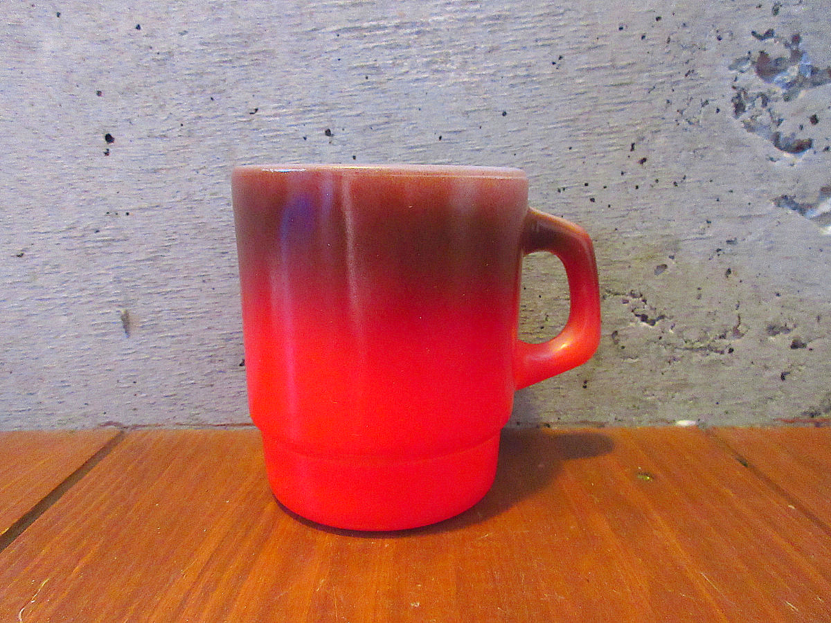 Fire King●スタッキングマグ赤×茶A●250226k1-frkファイヤーキング小物マグカップ雑貨USA製ミルクガラス