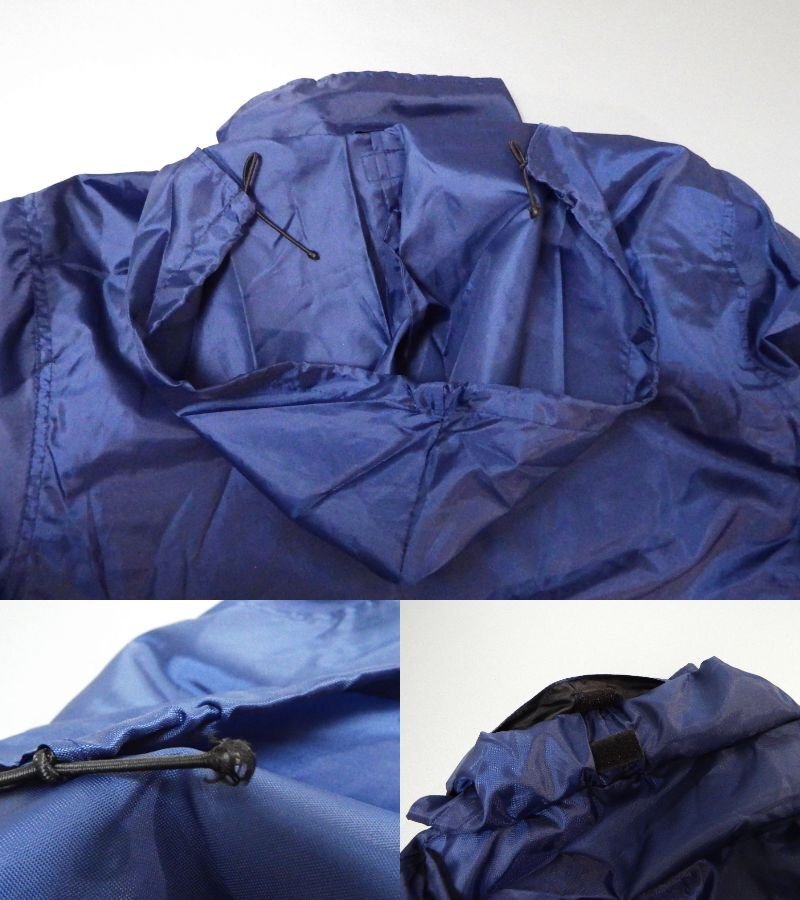 ・袖口内側にやや縫製の飛び出し箇所、フードの紐にほつれ箇所、素材上ややチリほこりの付着がございますが、全体的に着用感のほぼ無い未使用に近い状態と見受けられます。