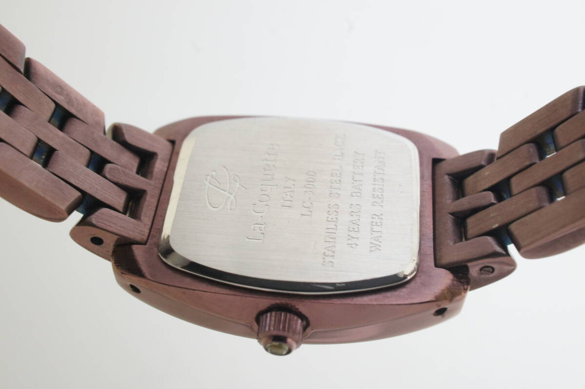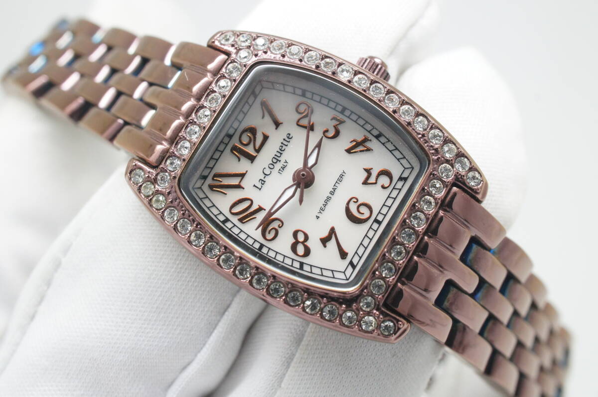 B88●作動良好 美品 La Coquette 4 YEARS BATTERY シェル文字盤 ラインストーン トノー型 レディース腕時計 お洒落 クォーツ