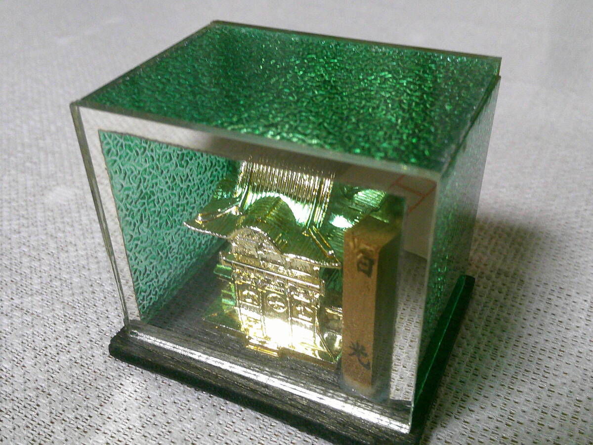 小さなガラスケースの中に、日光東照宮の置物が入っています。