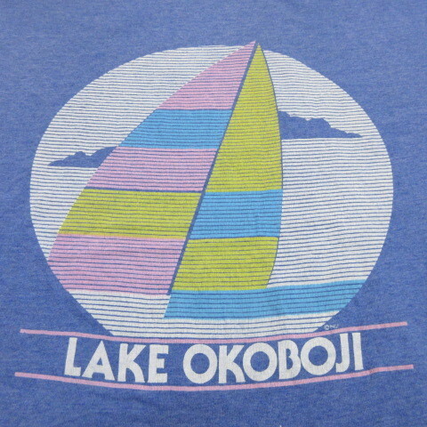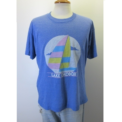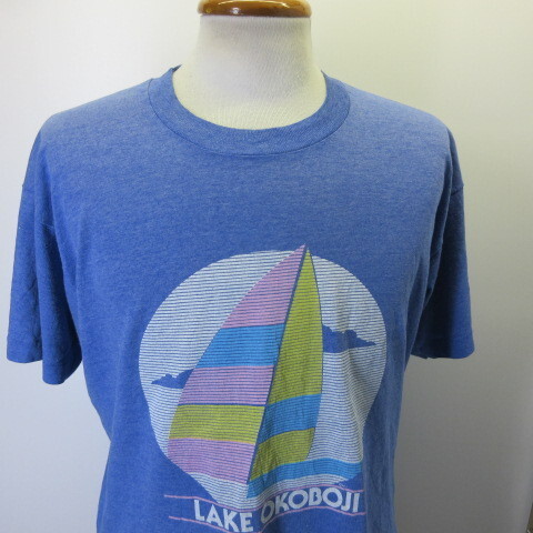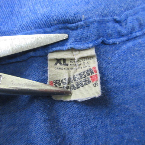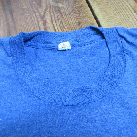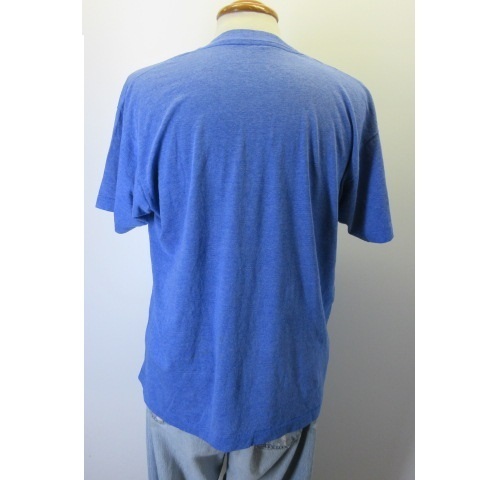 ★Size L (表記 XL)肩幅 48cm, 身幅 54cm , 着丈 63cm,袖丈 17cm ★アメリカ古着 80s頃 Tシャツナイスなユーズド感です★Condition 10/7使用感、多少の汚れ解れはございますが、目立つダメージはありません★Material 50%cotton POLY★Color 青★Made in USAご覧いただきありがとうございます。広島の古着屋ジョージアです。ヤフオクさんや、ヤフーショッピングさんで、30年前の在庫の オールドTシャツを、 どんどん出品中です。どうぞご覧ください。クリックポストでの同梱は出来ませんが、レターパックプラス、ヤマト便での同梱が出来ます