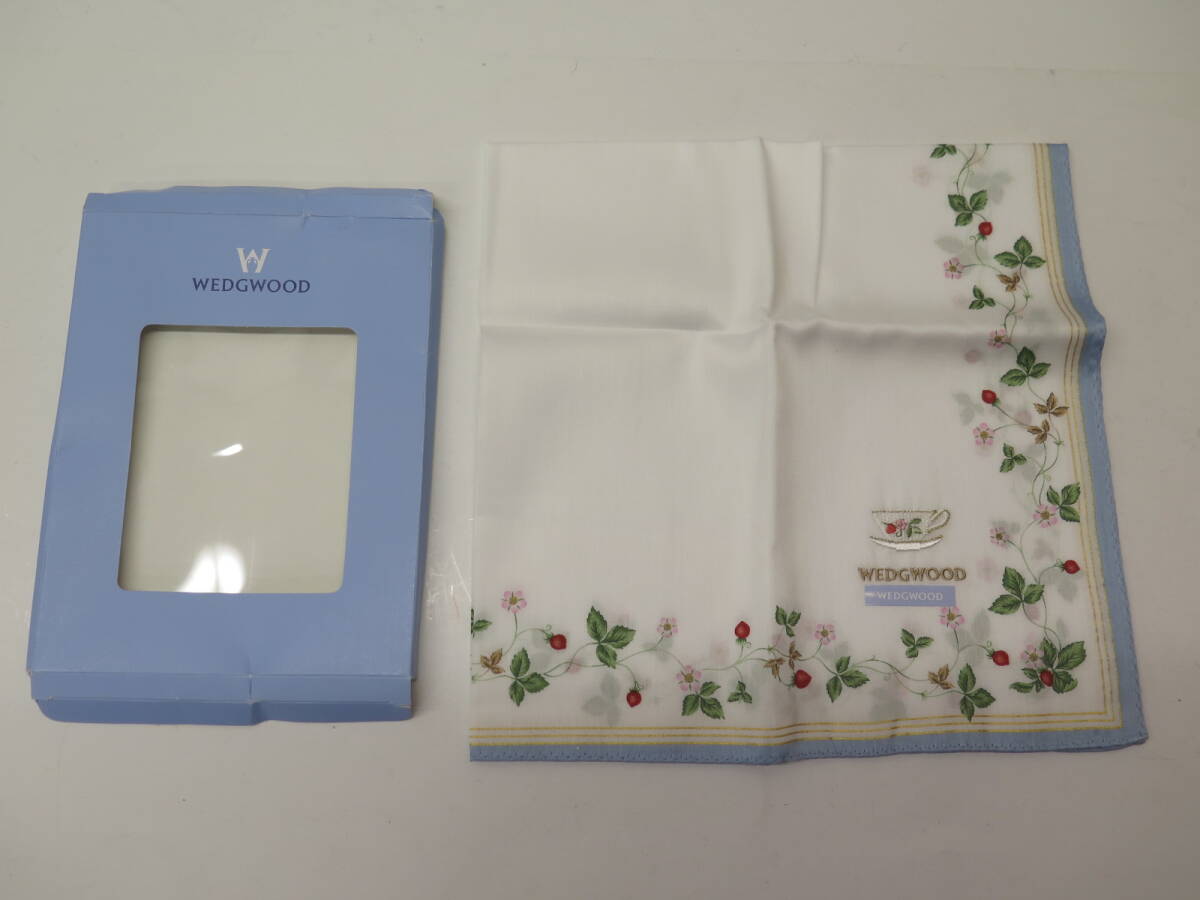 すべて未使用ですがウエッジウッドのシルクタオルとスワトウブルーのハンカチは箱から出しております。