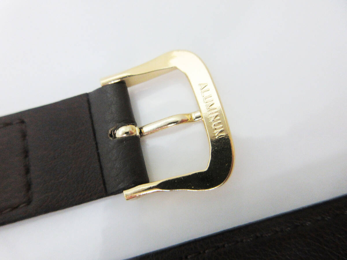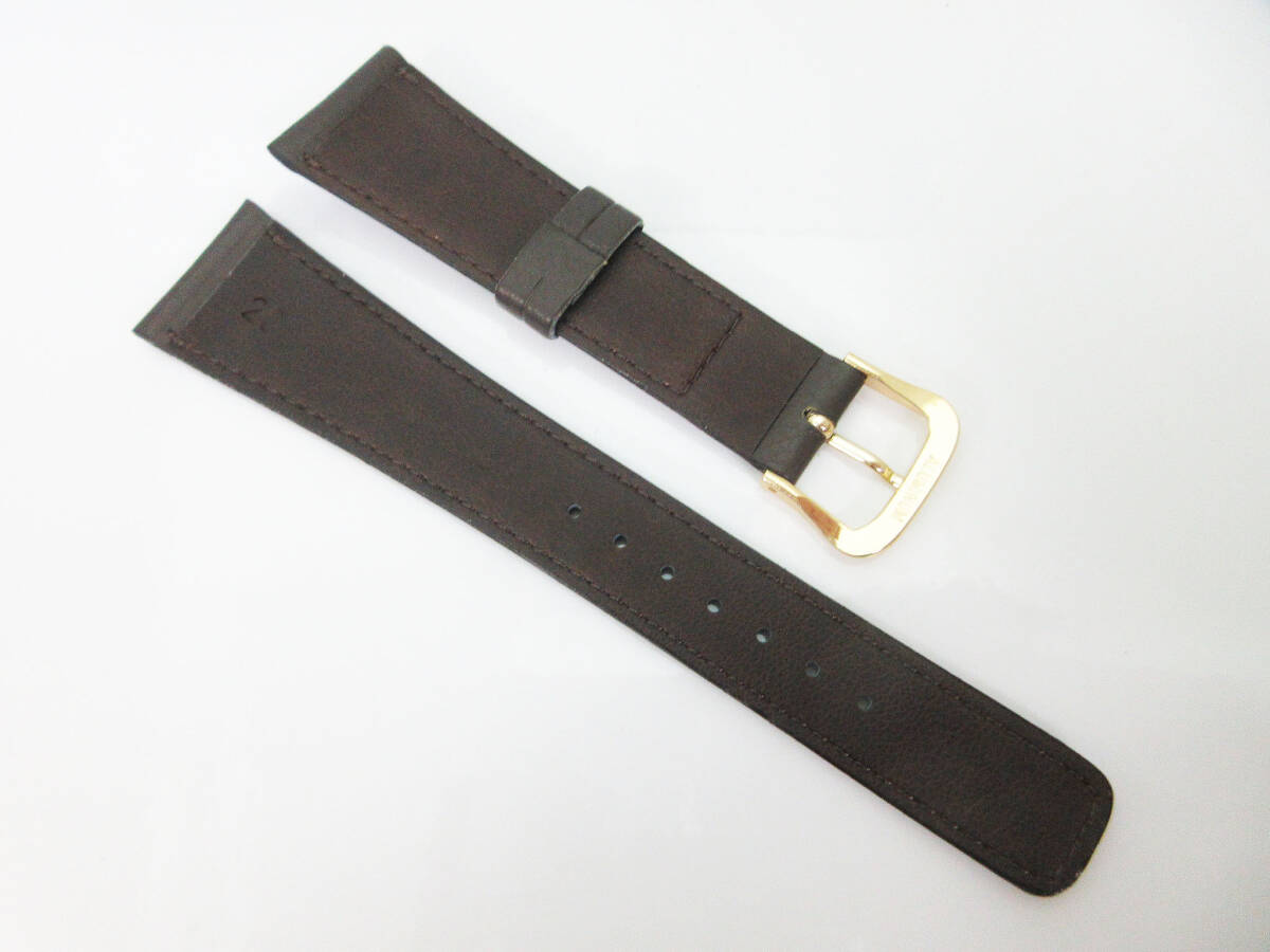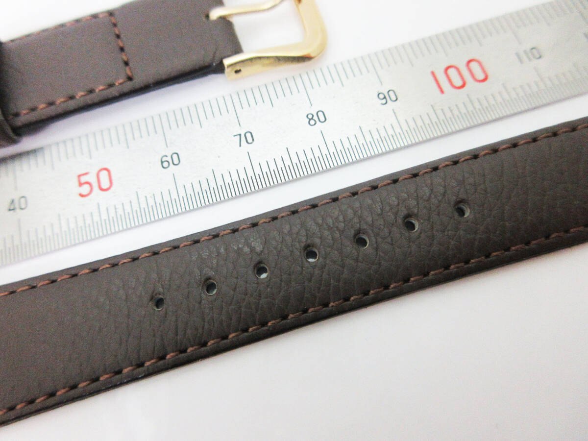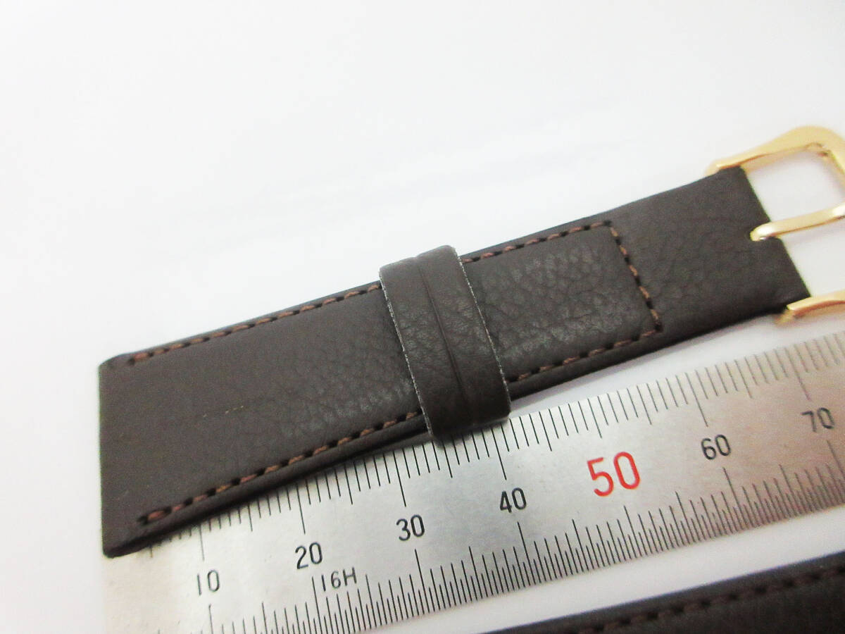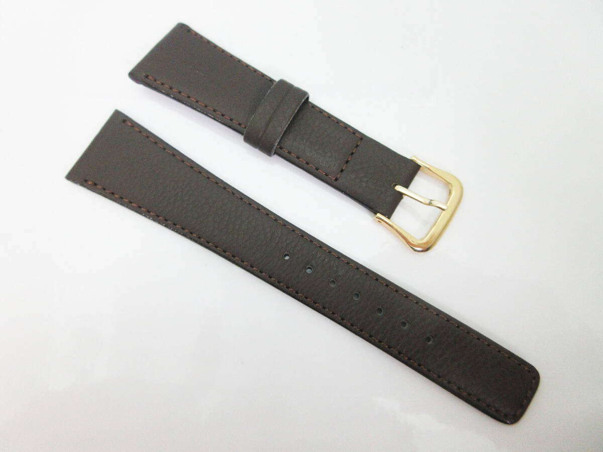 M1121【腕時計用 レザーベルト】ステッチ 茶 ゴールド アルミニウム金具★ラグ幅 20mm/バックル幅 16mm★替えベルト/交換バンド★未使用