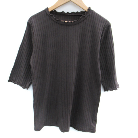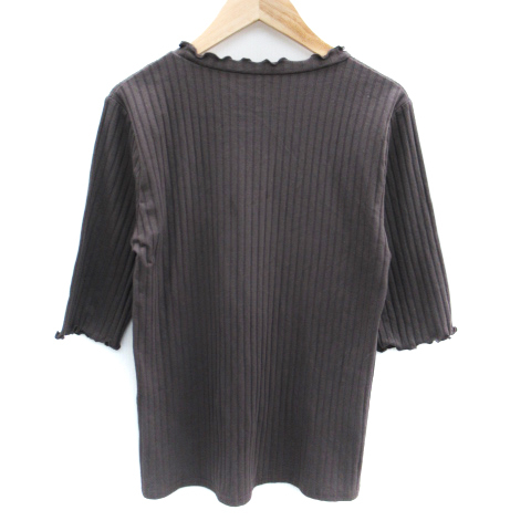ズーティー zootie カットソー 五分袖 ラウンドネック フリル L チャコールブラウン /SM30 レディース