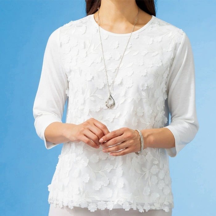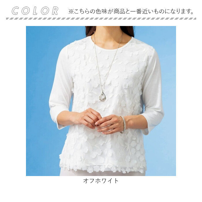 | 商品説明 | ・・涼しげなシャリ感ある無地とレース使いブラウスに同色プルオーバーを合わせた夏に重宝するアンサンブルです。 ・急ぎのお出掛けに活躍します。 ・立体的な花使いが華やかな女性らしさを演出します。 |