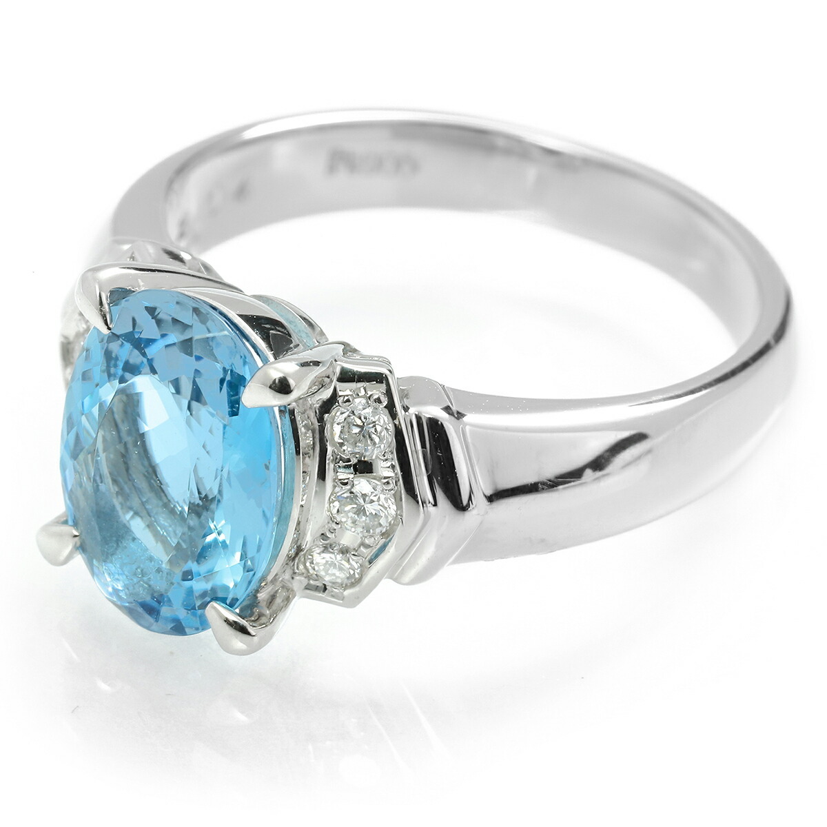 海の水のように美しい透明感と、瑞々しいブルーが特徴のアクアマリン。サイドに飾ったダイヤモンドがさらに輝きを引き立ててくれます。上品でありながら存在感のあるリングです。