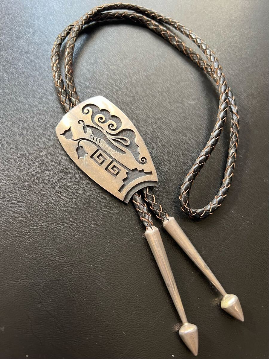 HOPI 人間国宝 故『Lawrence Saufkie/ローレンス・スフキー』1970's バタフライ ボロタイ ホピ ナバホ インディアンジュエリー