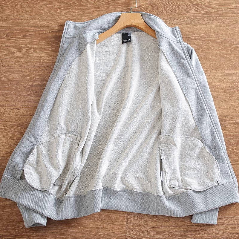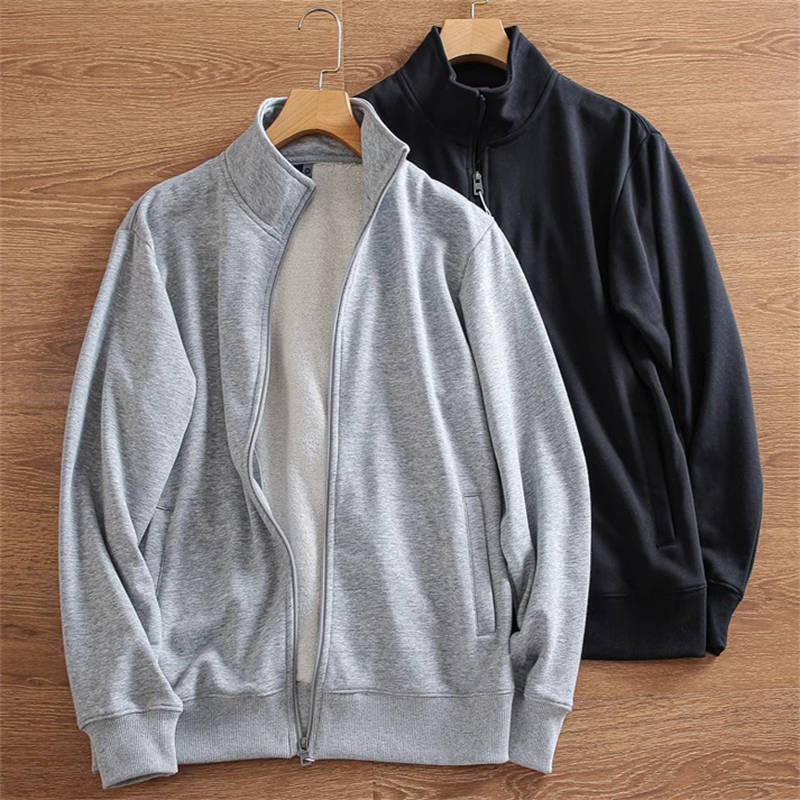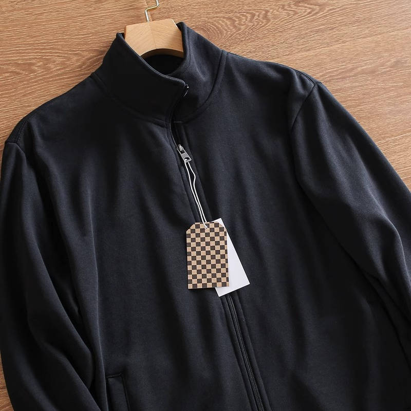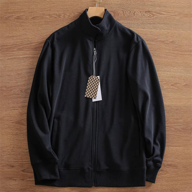 W1007-2XL/黒色 高品質コットン混紡素材!新品 メンズ 綿混 ジャケット 立ち襟 スウェット 肌触り抜群 春秋 ビジネス カジュアル アウター