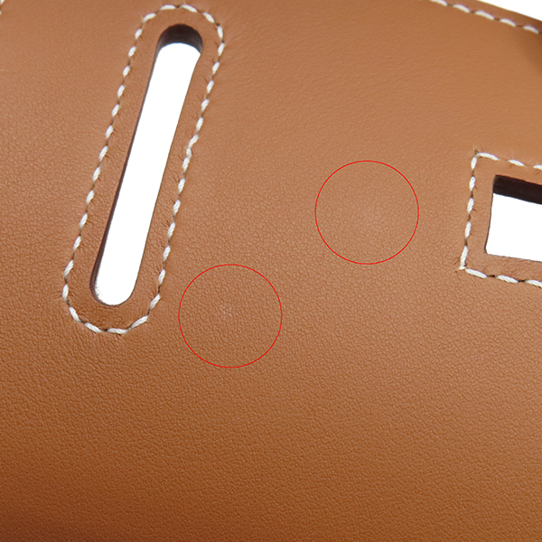 【外側】特になし【内側】フラップ裏に保管による押し跡【におい】僅かな素材特有のにおい【刻印の場所】内側左側面【保護シール箇所】ターンロック根元、ベルト通し根元、ベルト金具、カデナ