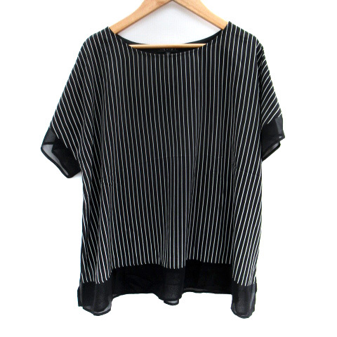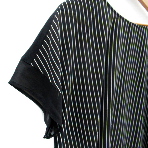 インディヴィ INDIVI カットソー 半袖 ラウンドネック ストライプ柄 切替 38 M 黒 ブラック /SM36 レディース